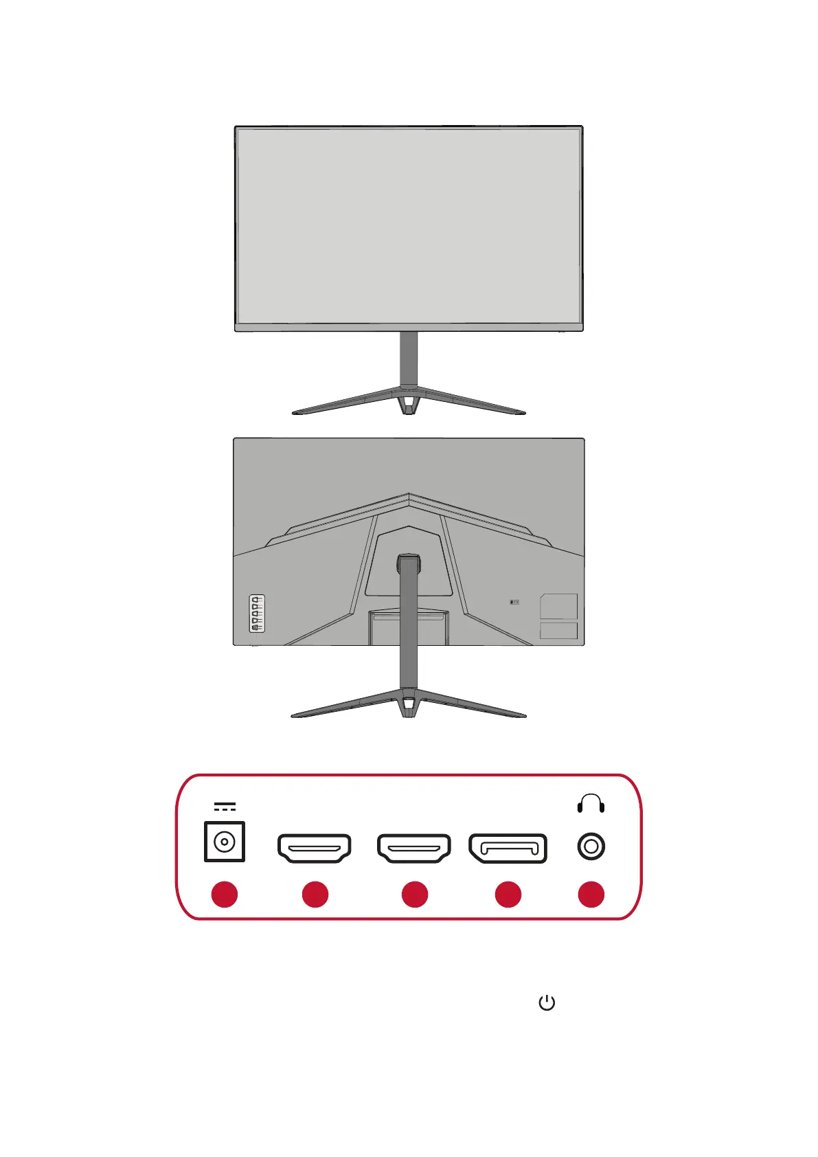 1. DC IN 2. HDMI 3. DisplayPort 4. Audio Out