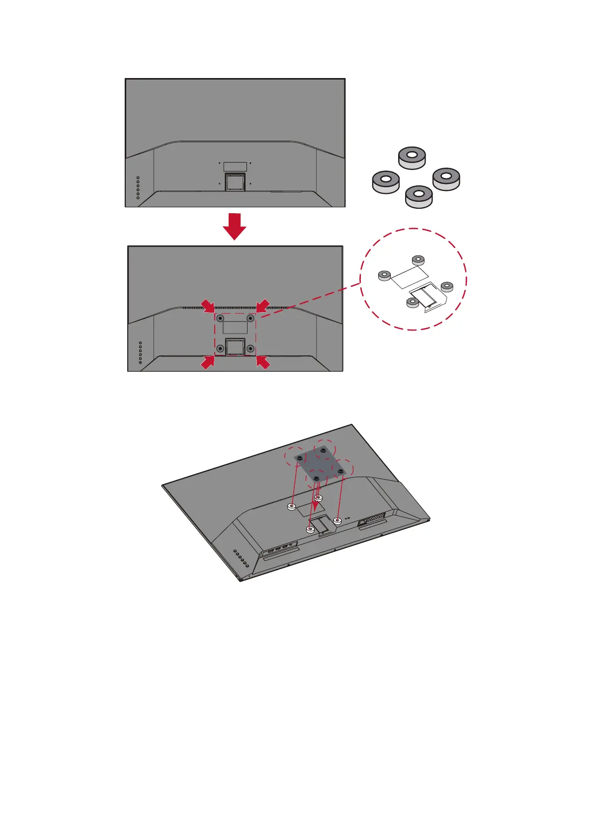 5. Aach the mounng bracket to the VESA mounng holes at the rear of the