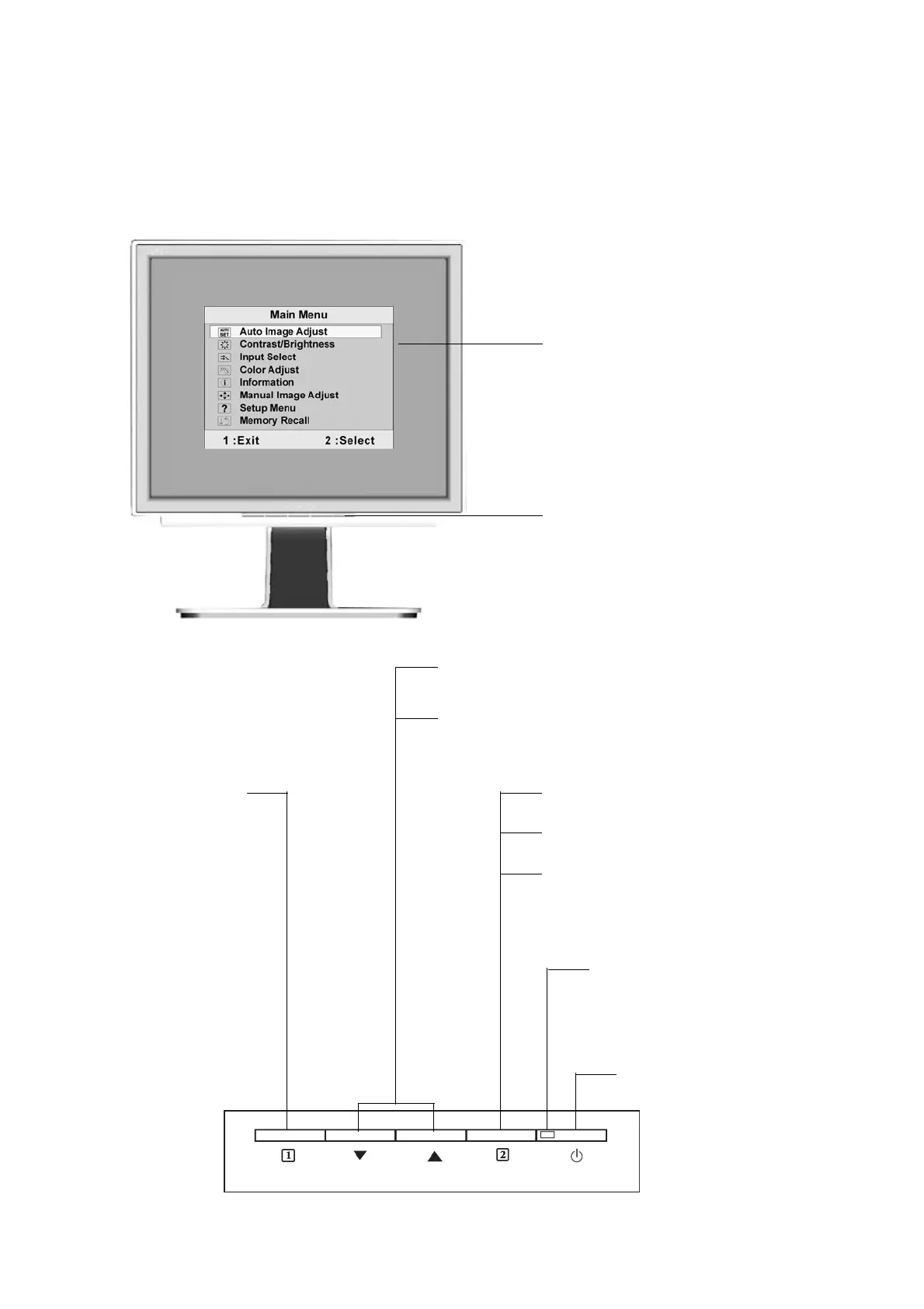 on the screen. The OSD controls are explained at the top of the next page and are defined in