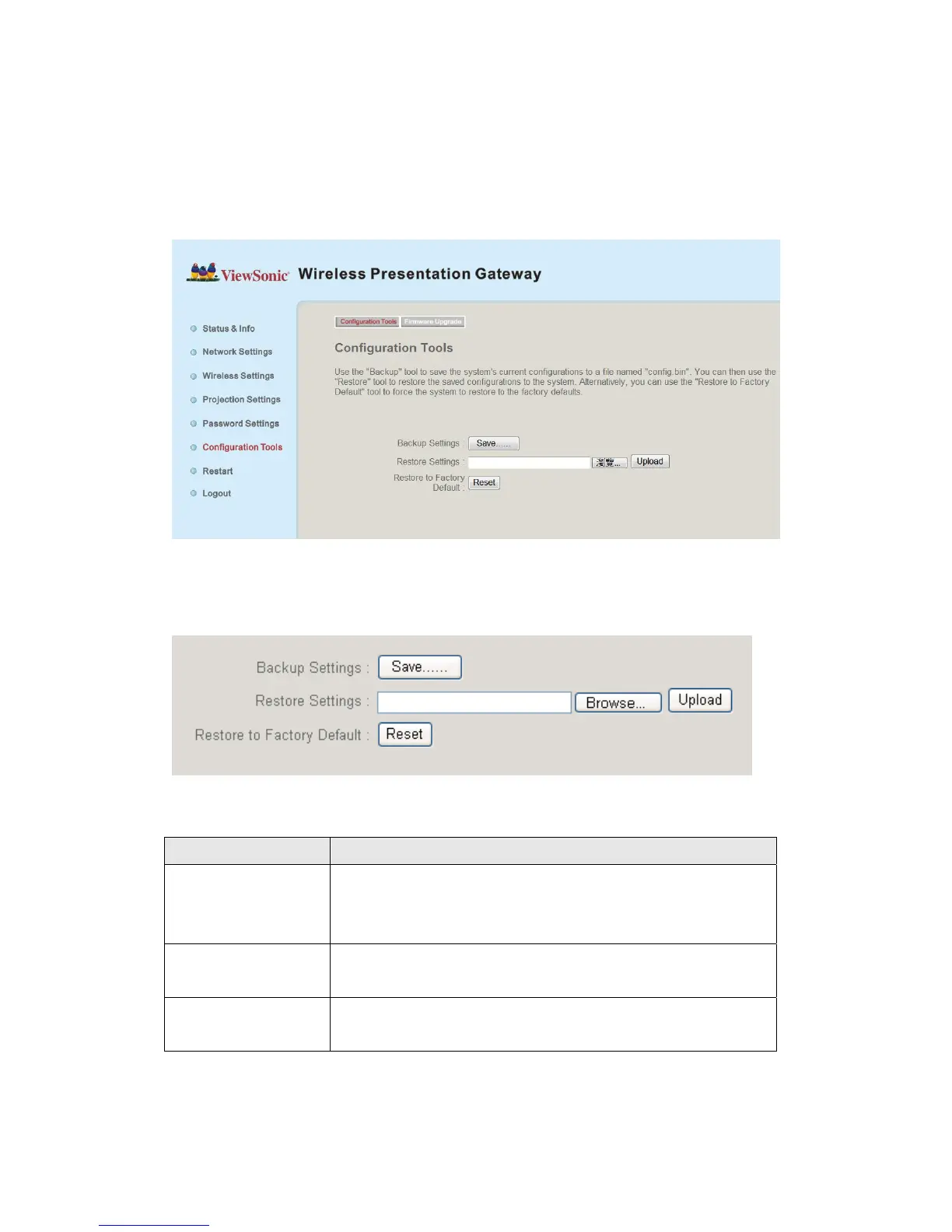 Backup Settings Click ‘Save…’ button to save wireless presentation