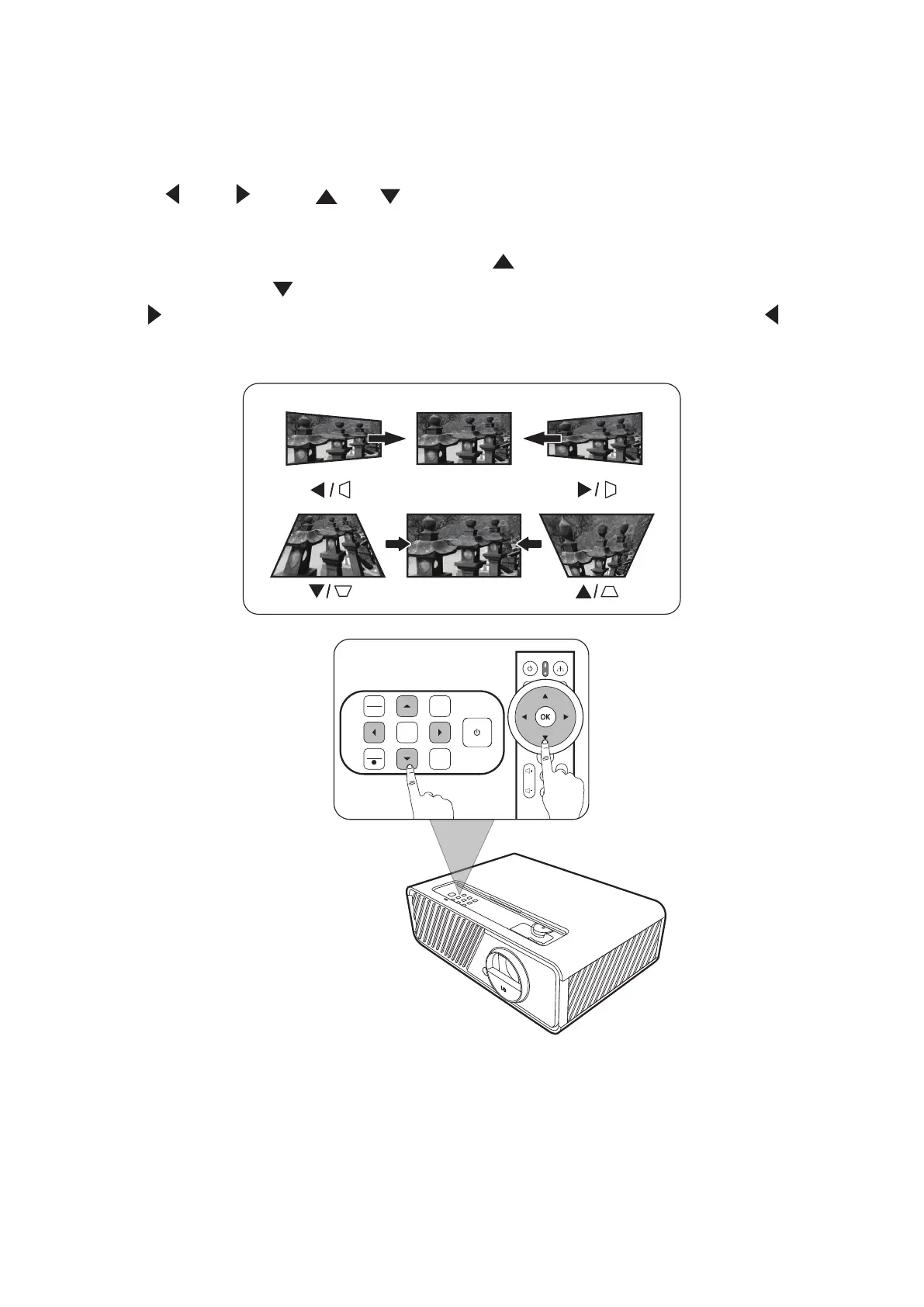 Press Right to correct keystoning at the right side of the image. Press Left to