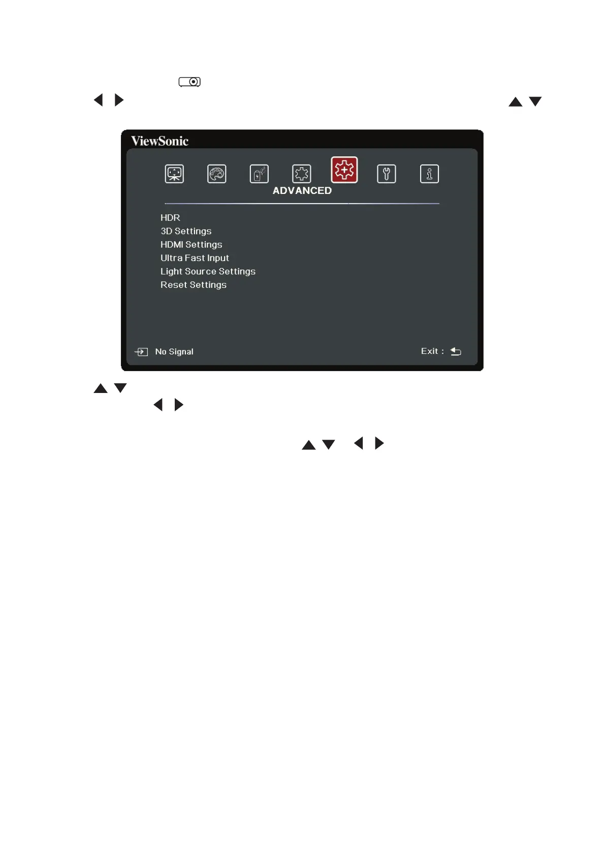 / to select the ADVANCED menu. Then press ENTER/OK or use / to