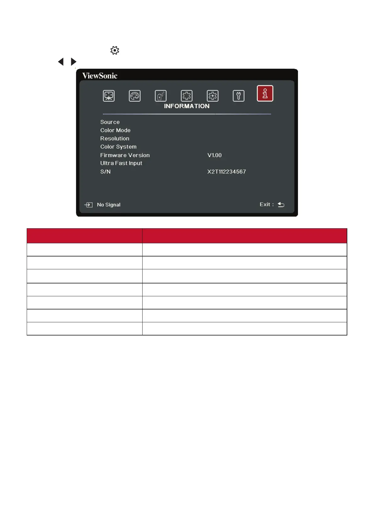1. Press the MENU or buon to display the On-Screen Display (OSD) Menu.