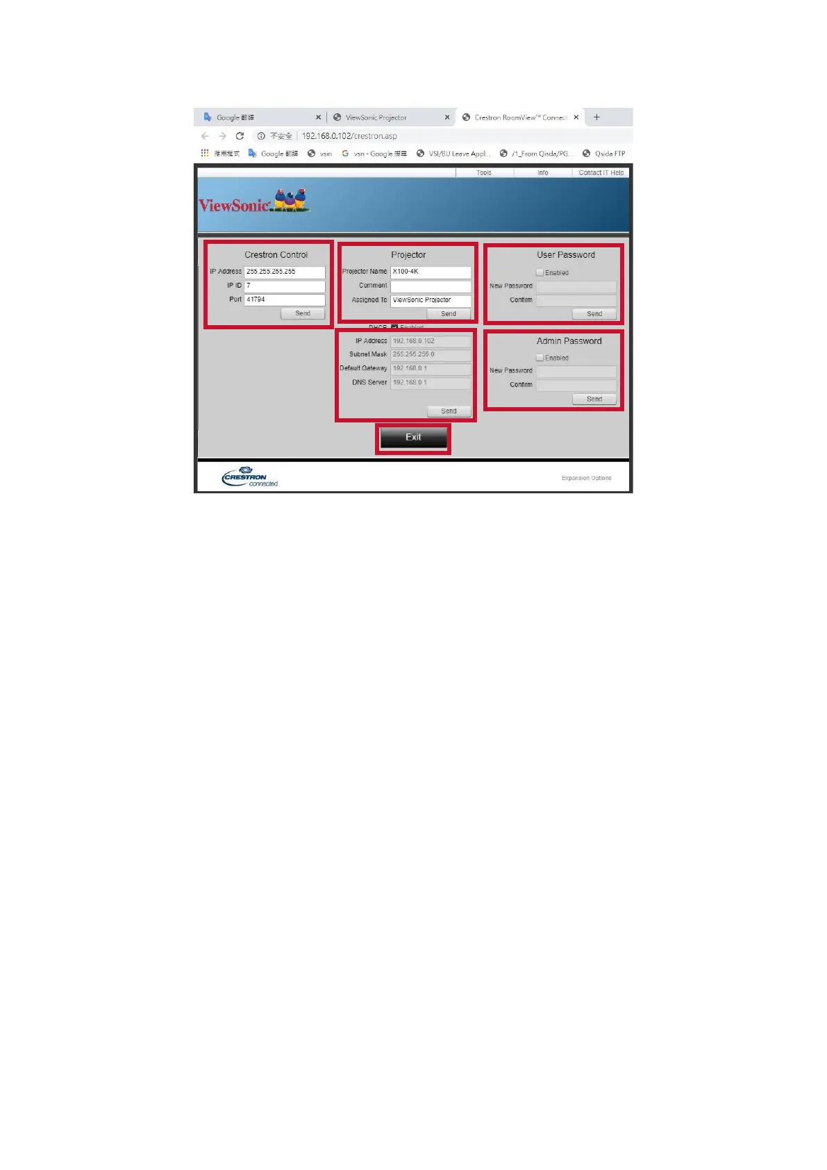 v. Once set, access to the Tools page will be password protected.