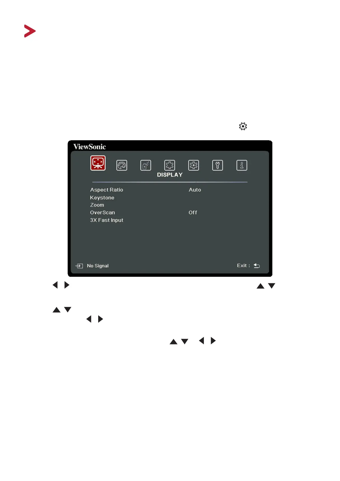 1. Press / to select a main menu. Then press ENTER/OK or use / to access