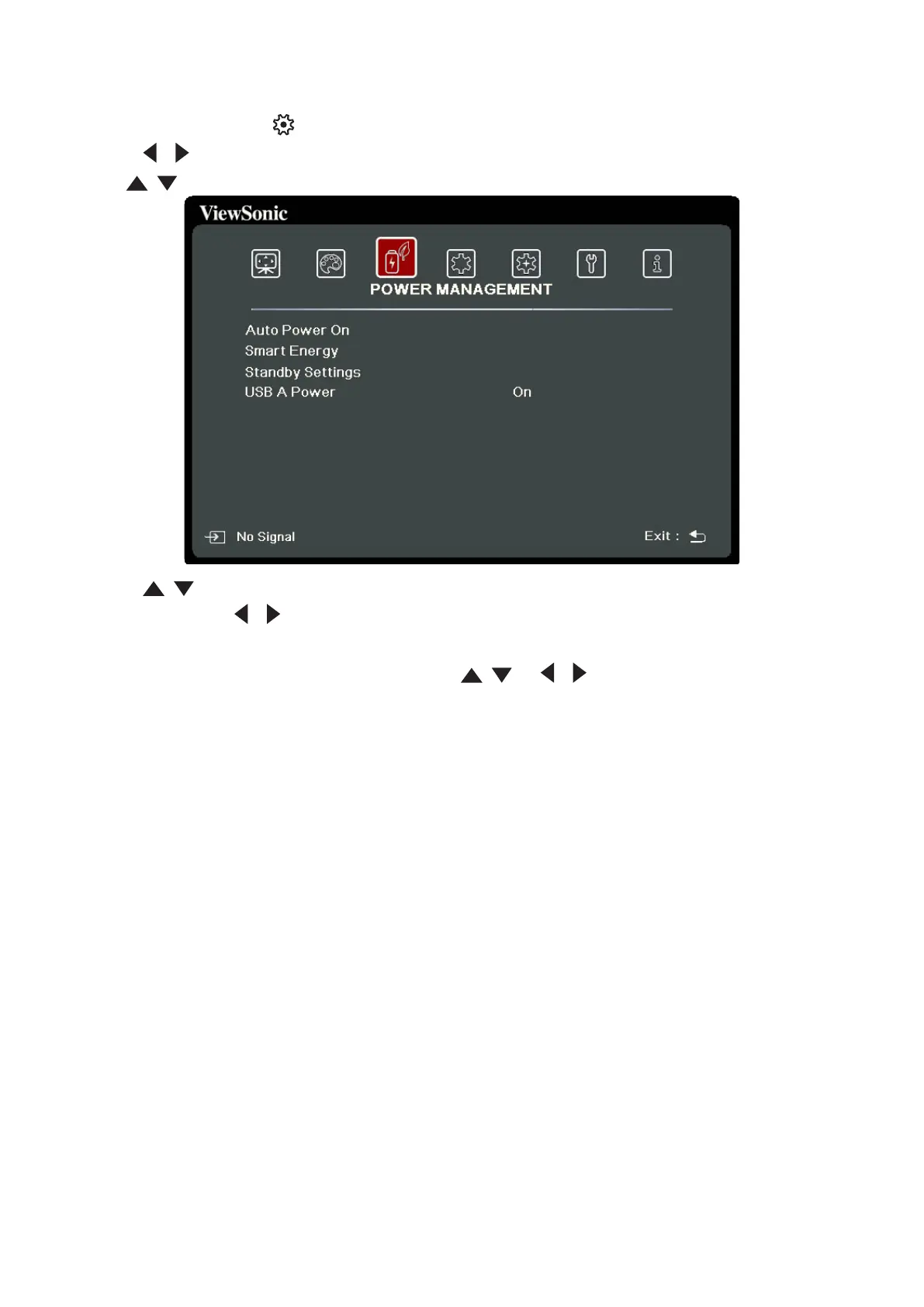 2. Press / to select the POWER MANAGEMENT menu. Then press ENTER/OK or
