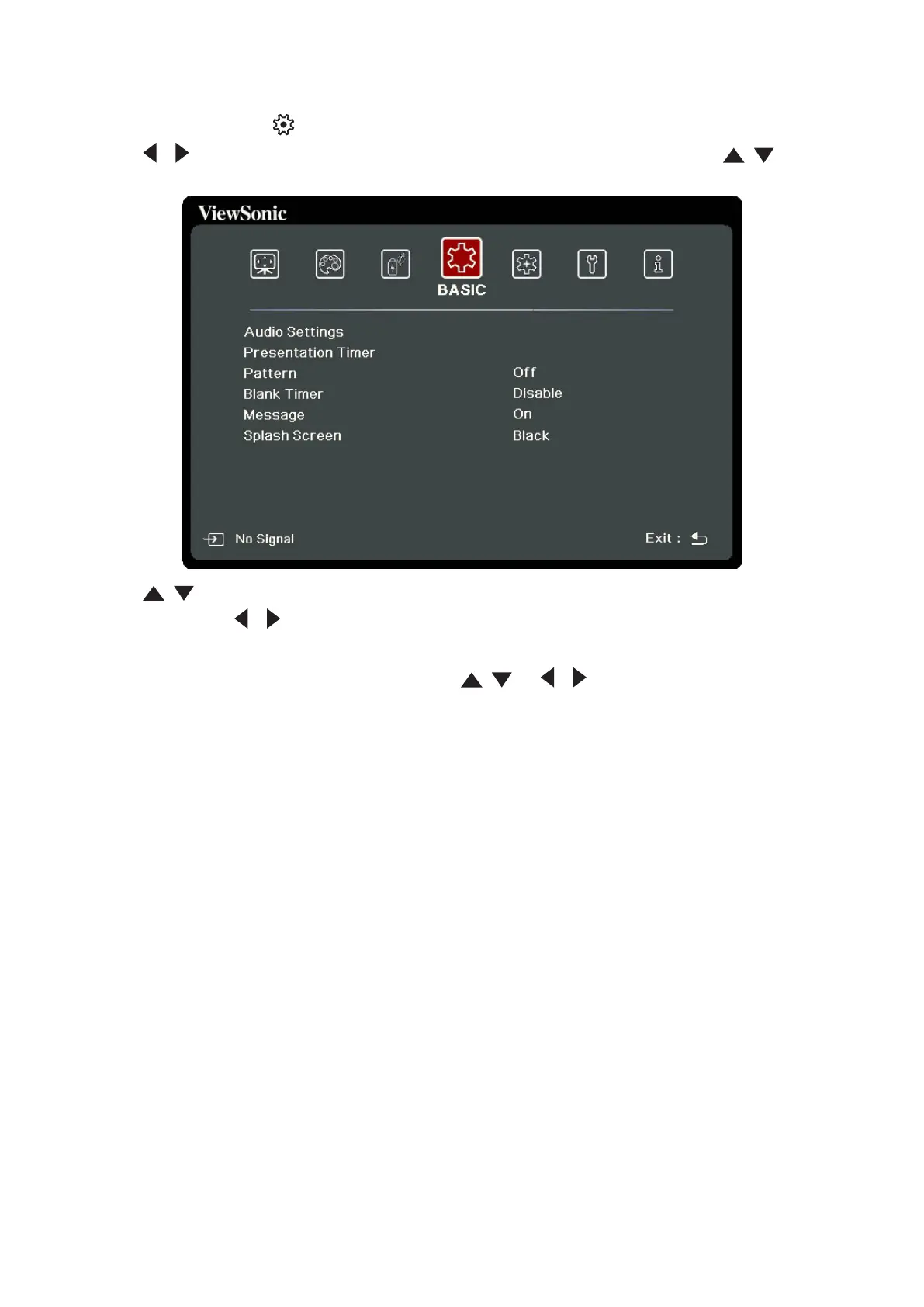 2. Press / to select the BASIC menu. Then press ENTER/OK or use / to