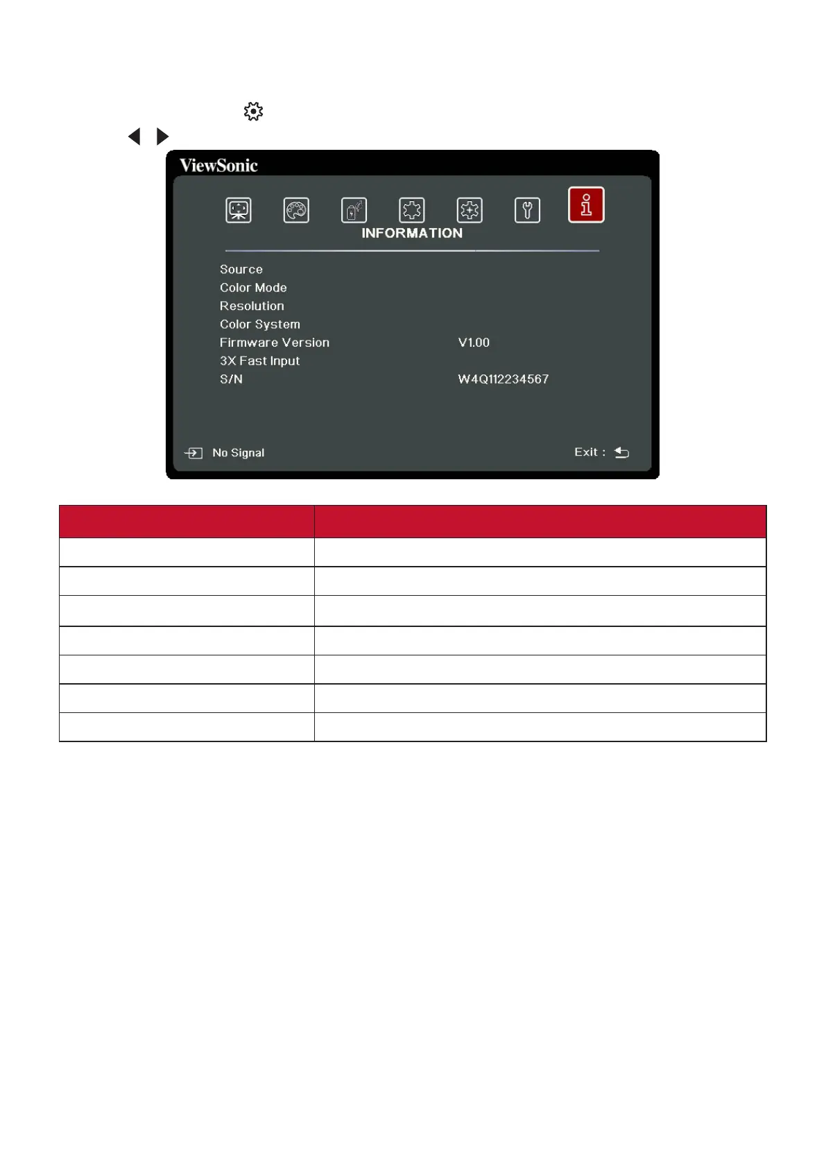 2. Press / to select the INFORMATION menu and display its contents.