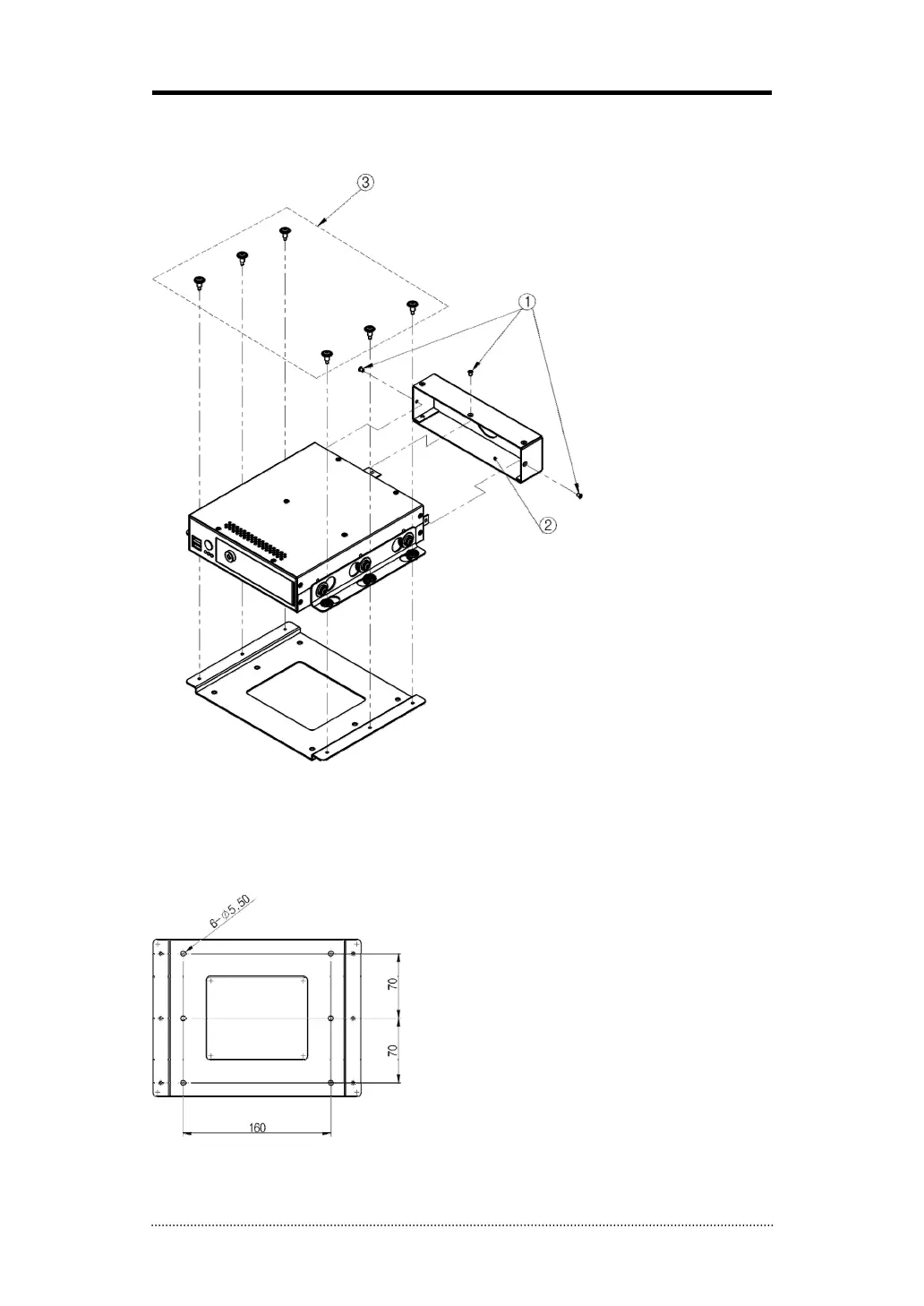 - The installation bracket has following sizes, and it must be bolt down on the bottom or top