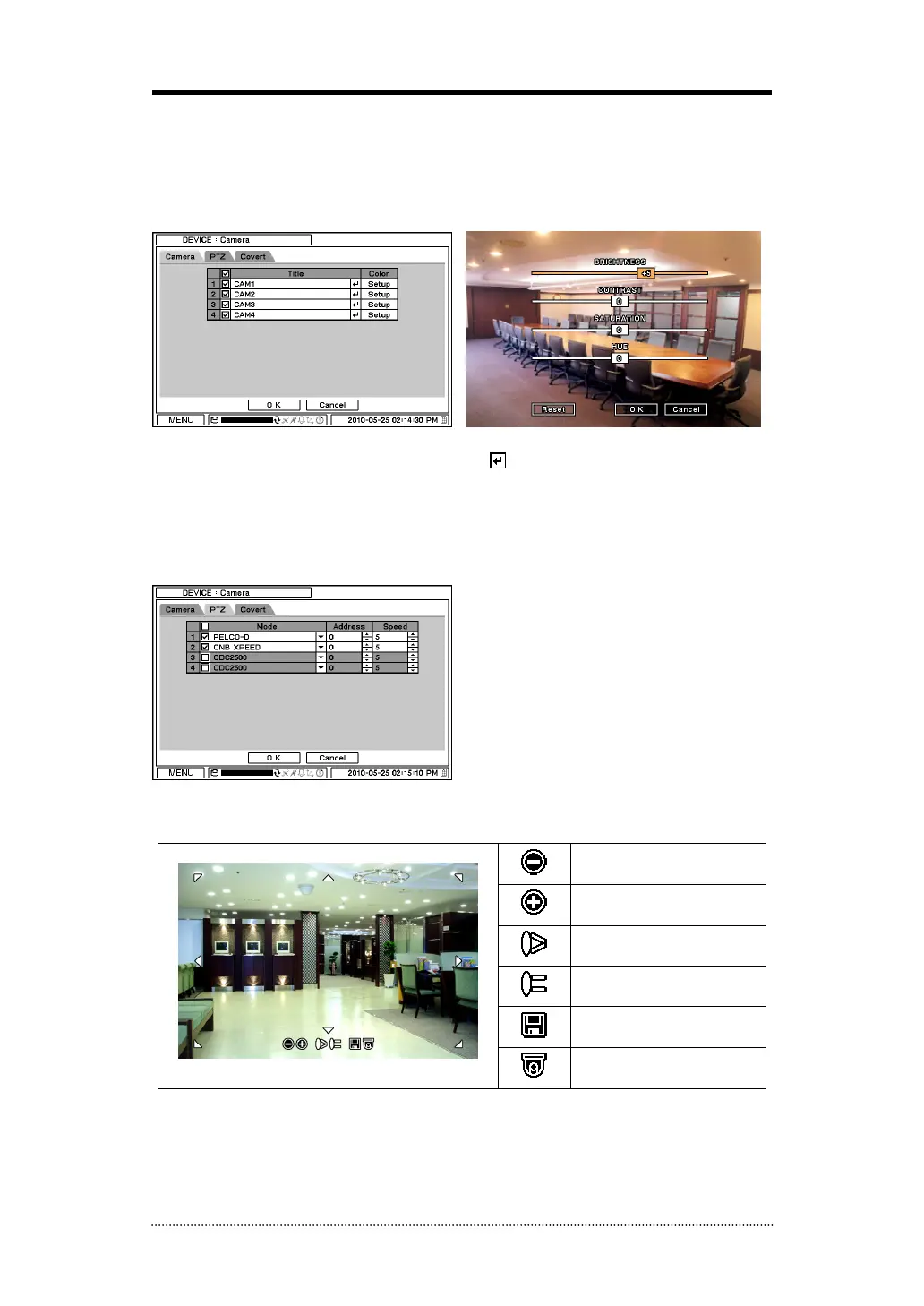 mouse, click arrows to move around PTZ and click icons for each functions of PTZ camera.