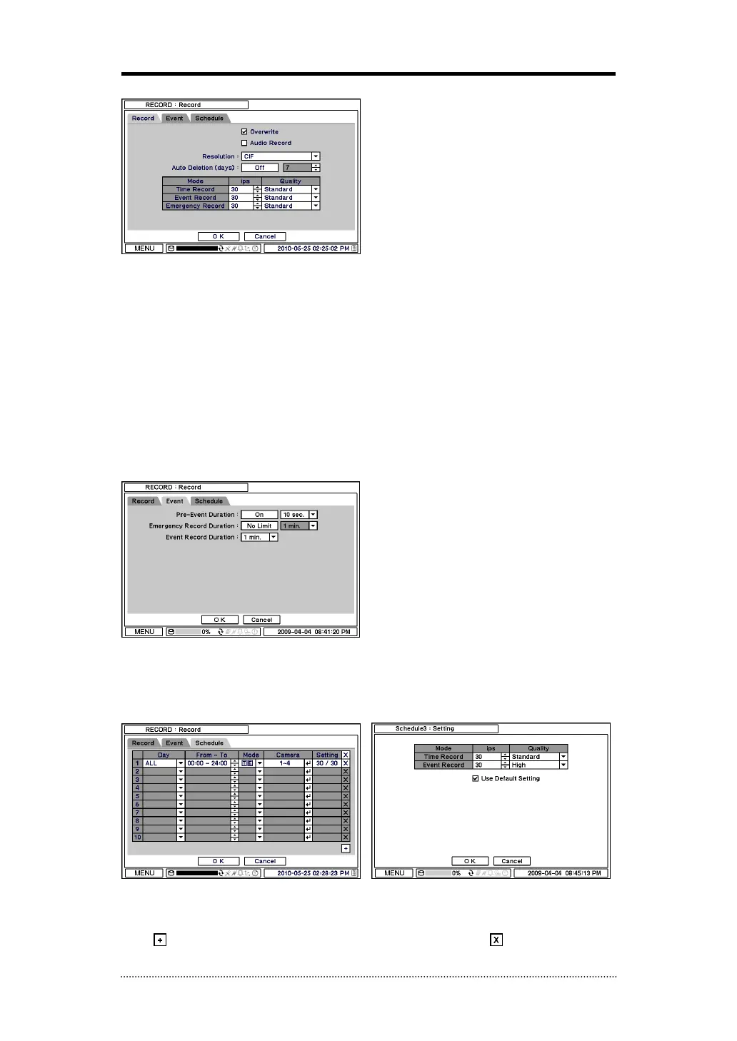 In Schedule, fully detailed and specified recording schedules can be set by day, time, modes,
