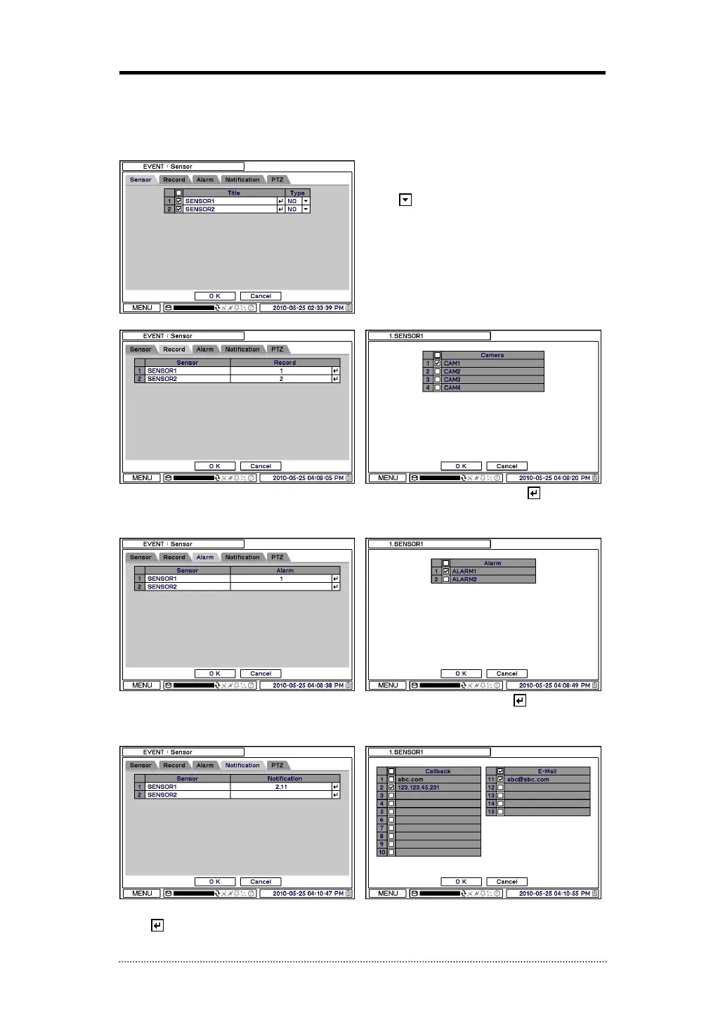 2-6-1. MENU > EVENT > Sensor