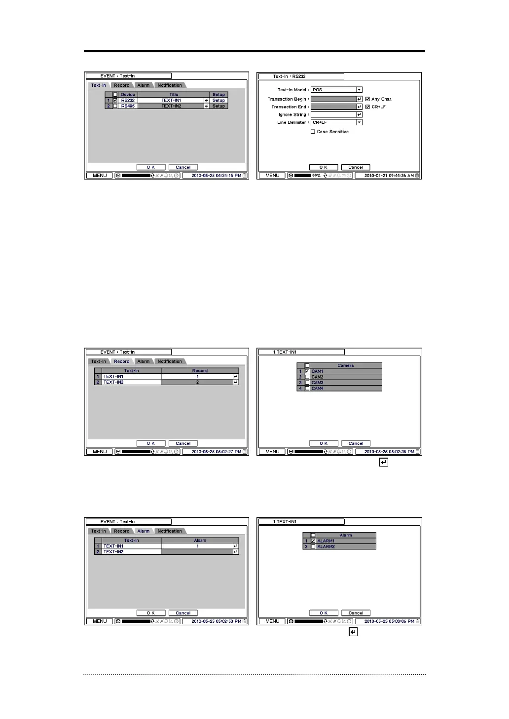 camera(s) to be synchronized with text event. If RS232/RS485 Port are being used at the same