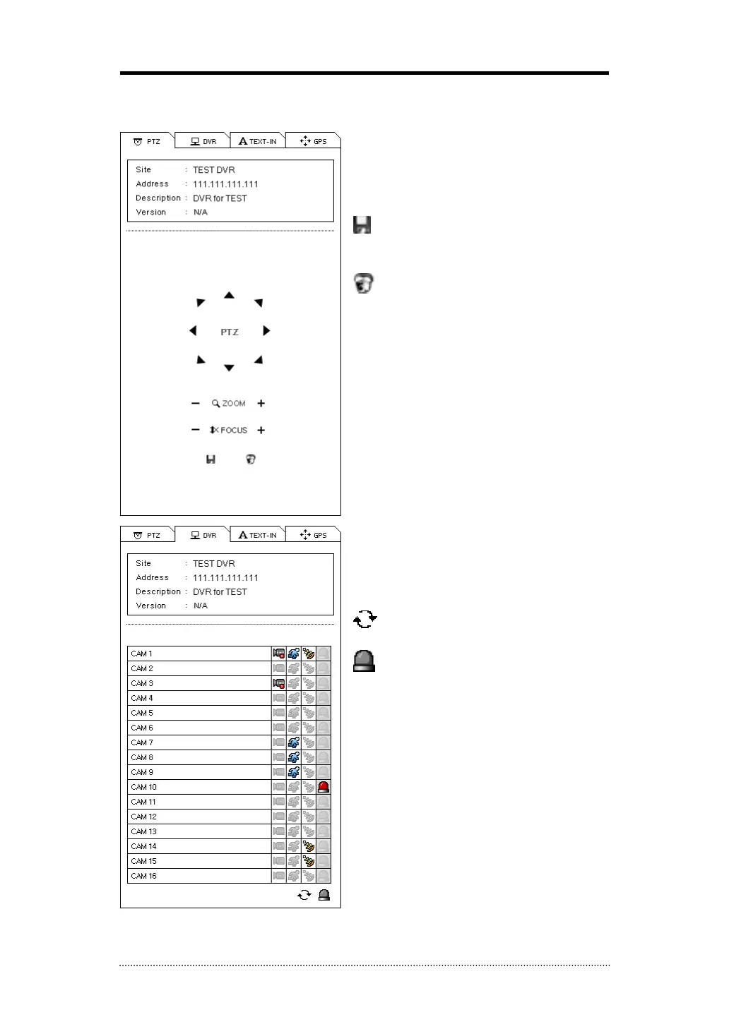 site. User can activate a remote alarm on DVR