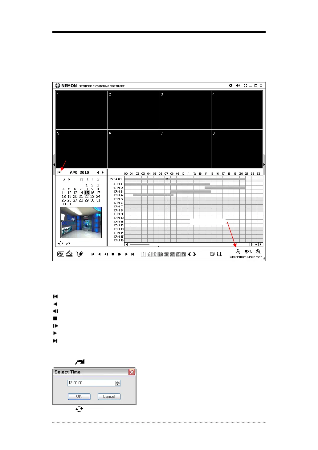 Calendar Search Panel appears when a site is connected under playback mode as shown below.