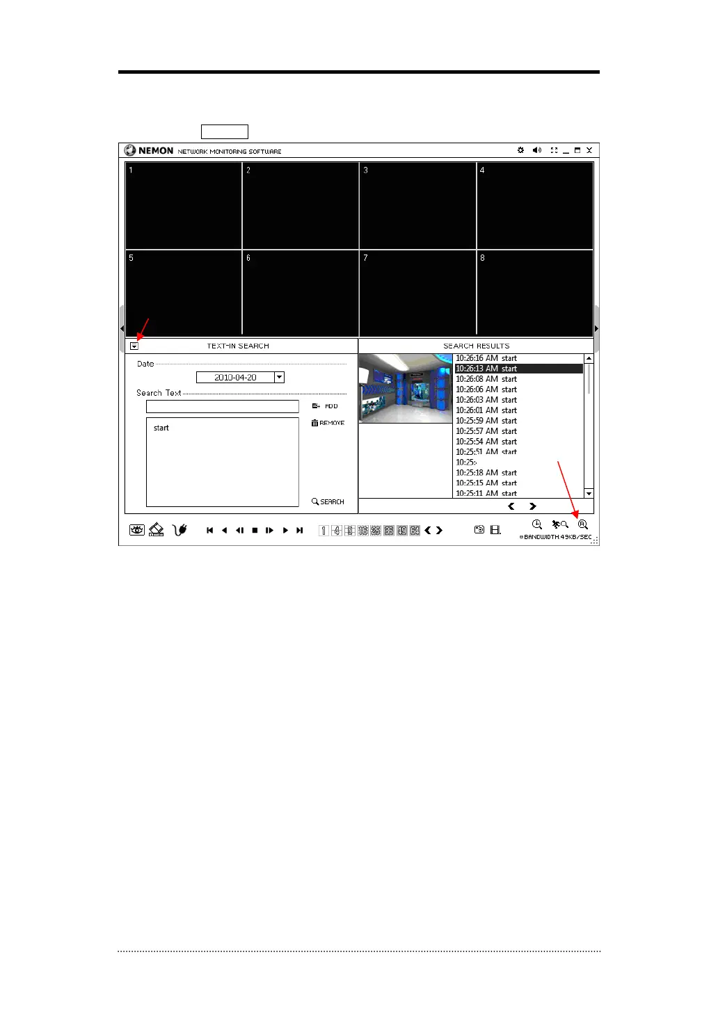 Select an text-in event from the list for playback. Search trough the list using < > buttons.