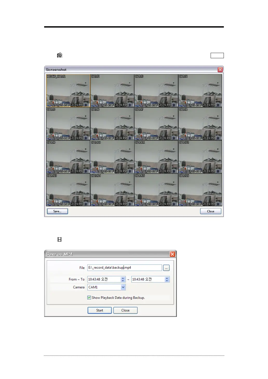 • Select Camera number. Press Start to create MP4 file.