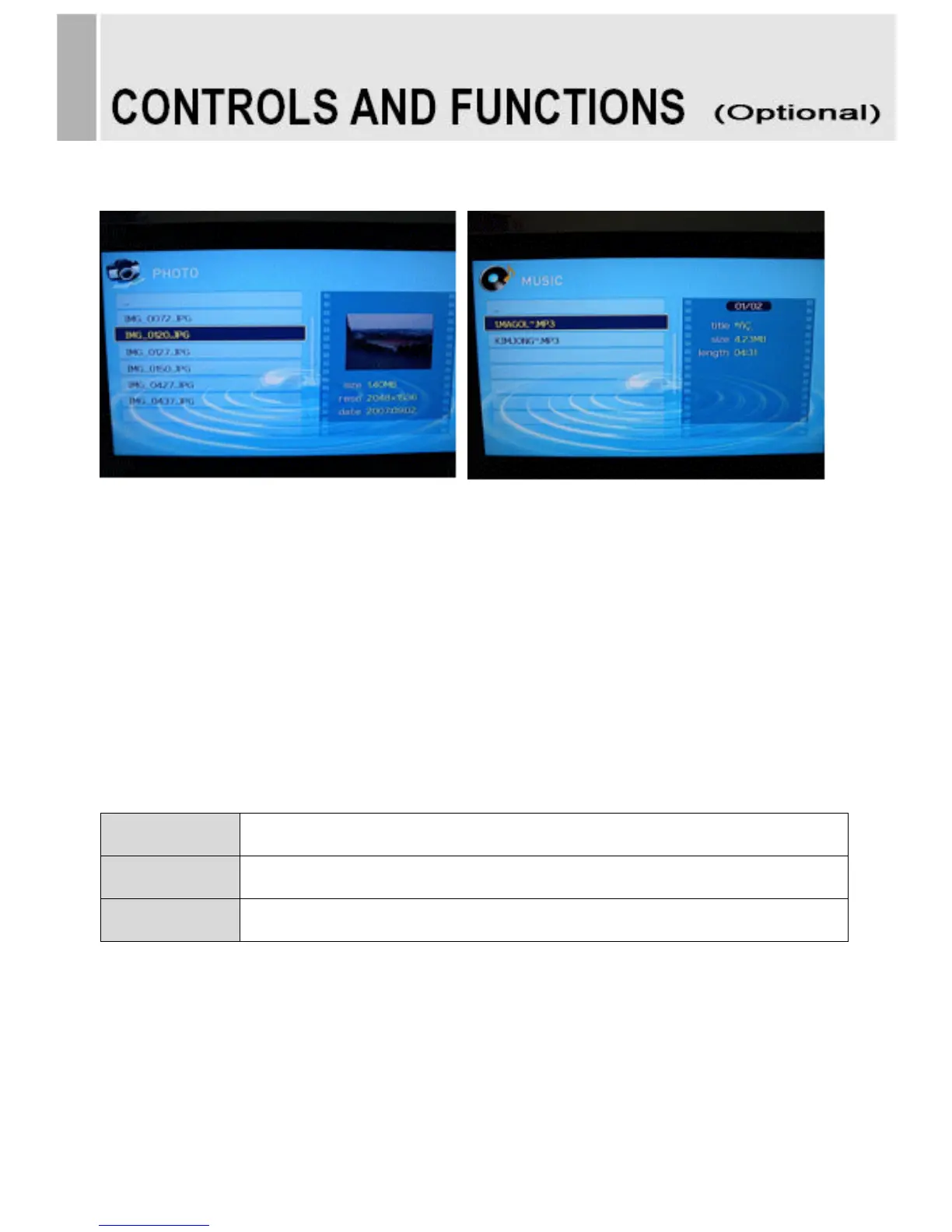 1. Press the USB button and then use ◀/▶ button to select the PHOTO MUSIC.