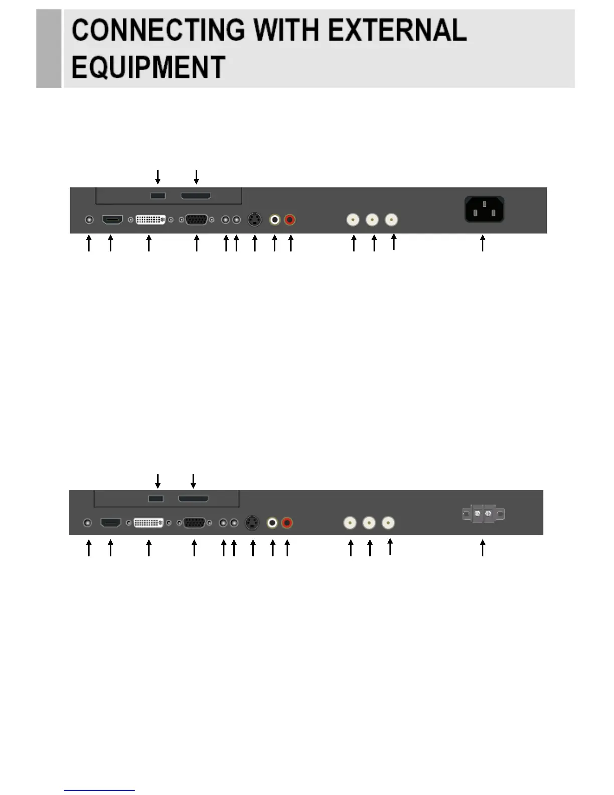 ViewZ 22-INCH TFT-LCD - CONNECTING EXTERNAL EQUIPMENT; Top Panel Input;Output Ports