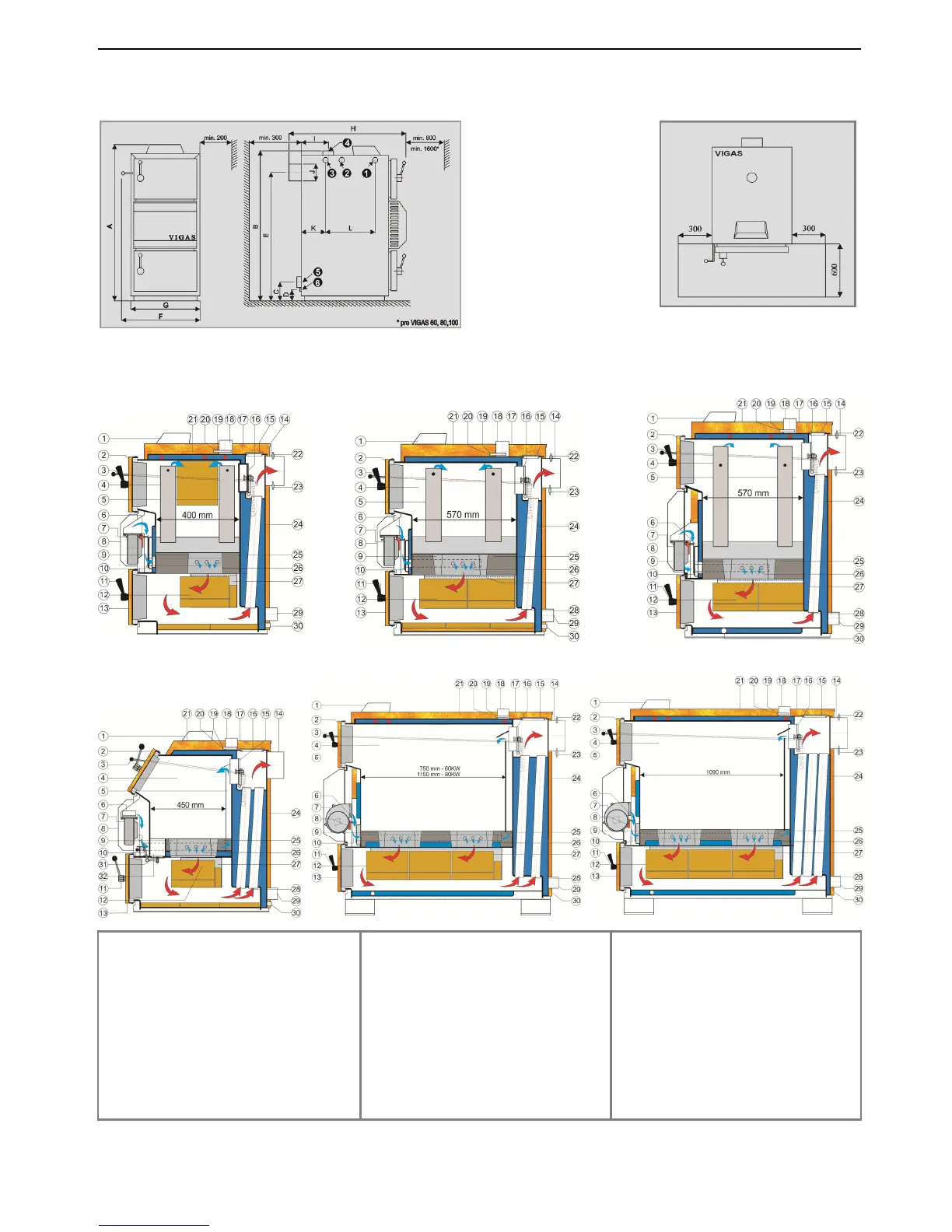 VIGAS 16 - Boiler Specifications and Dimensions; Boiler Schematic Diagrams
