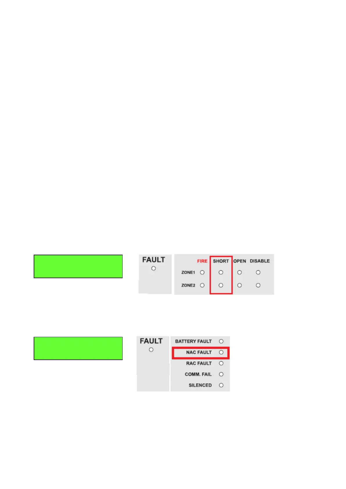 audibly with distinctive indication than fire alarm (1 Sec ON and 2 Sec OFF) . NAC is not active, the fixed fault