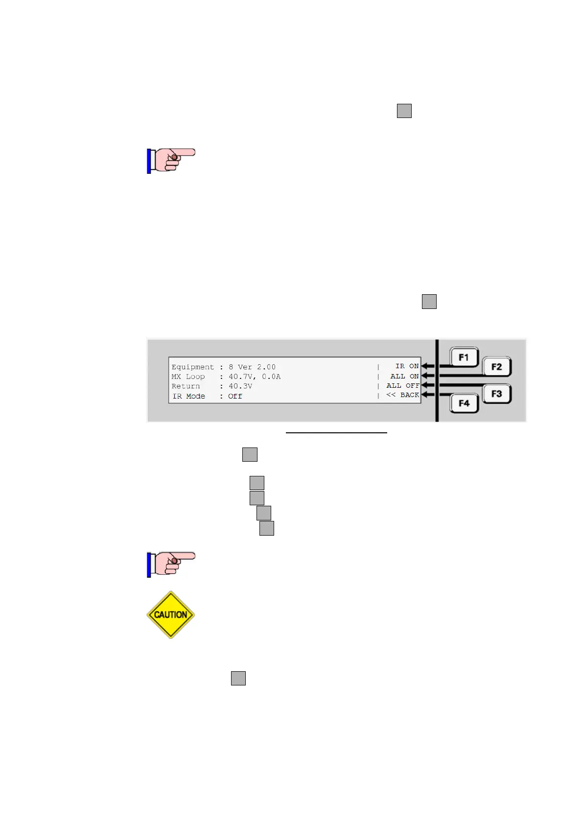 From MX Loop Status display press IR CTRLF1 to access the IR