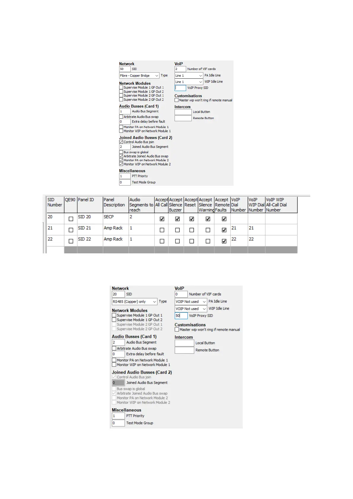 assignment of SID 50 as the VoIP Proxy SID, the Audio Bus Segment as 2, and the