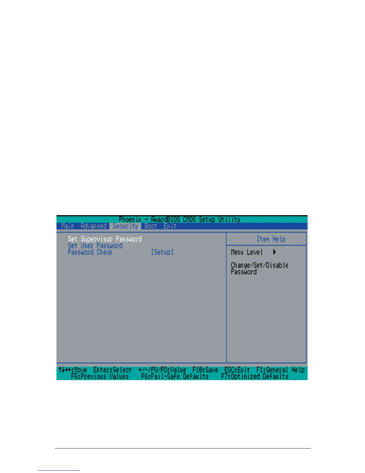 Choose Security from the Award BIOS main menu with the Left/Right arrow keys.