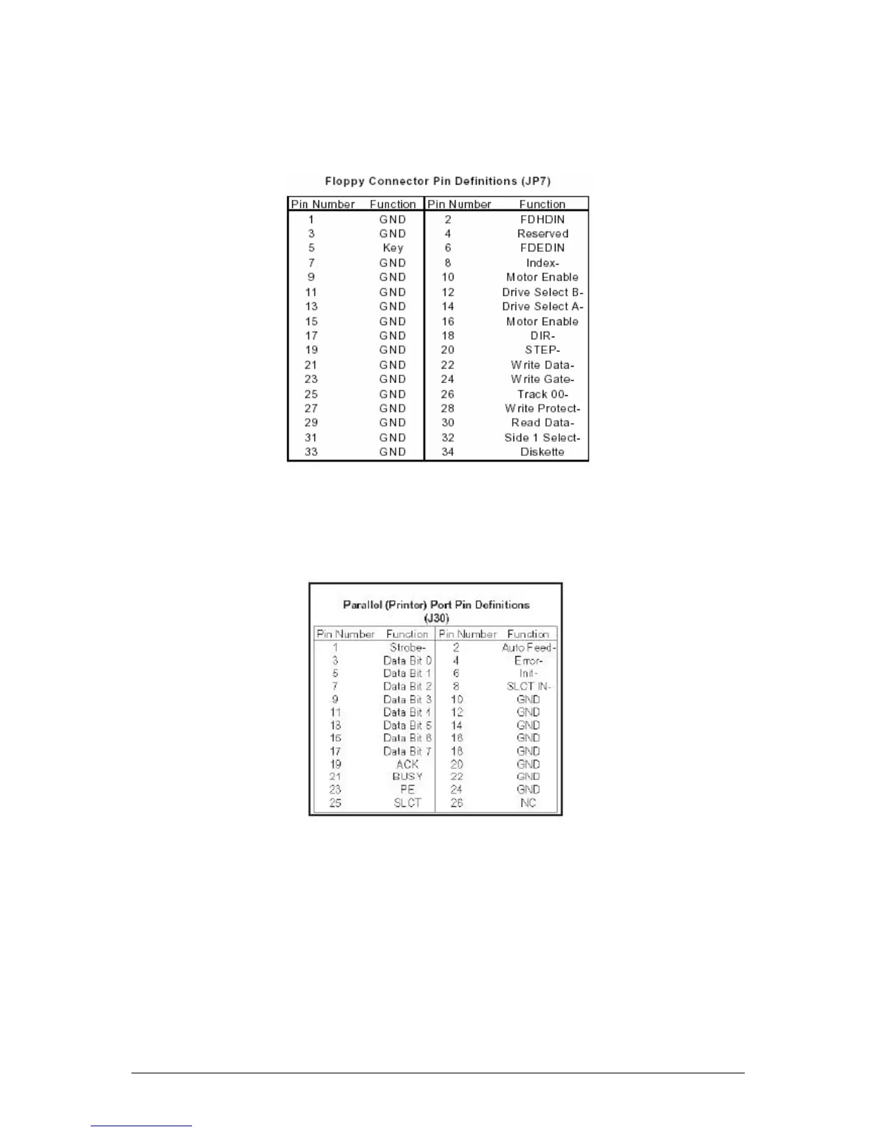 The Floppy connector is located on JP7. See the table below for Pin definitions.