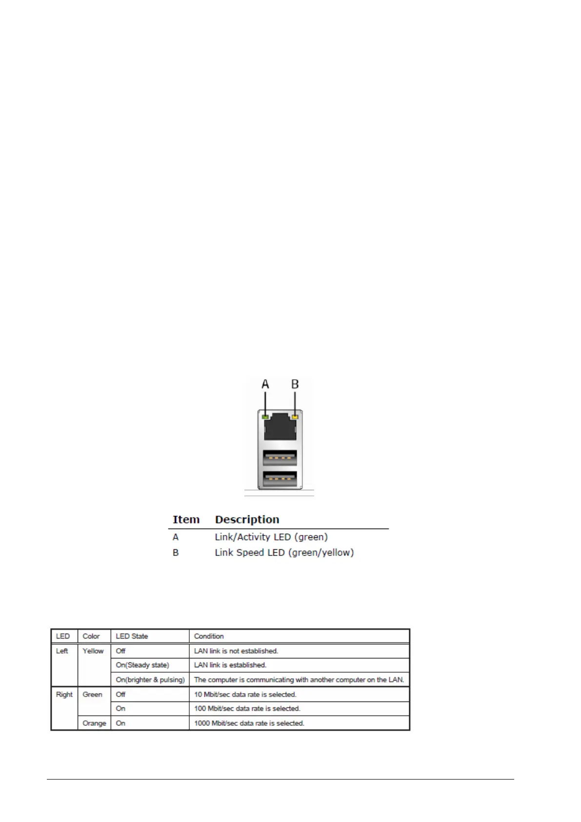 Table 1: LAN LED Status