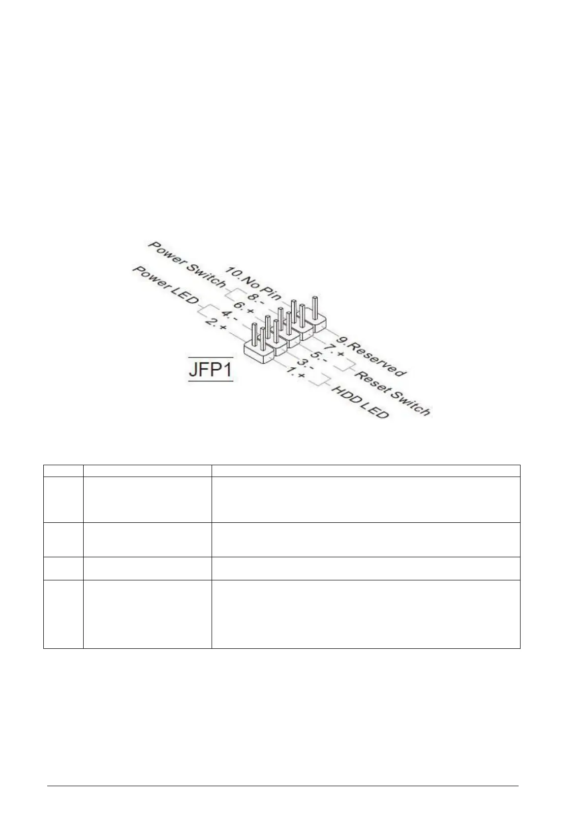 Front Panel Connectors: JFP1