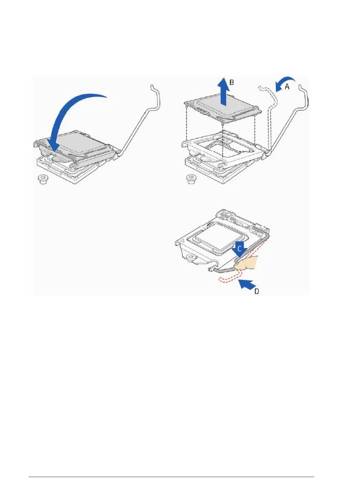 the socket lever under the load plate tab (Figure 25, C, and D). The socket cover