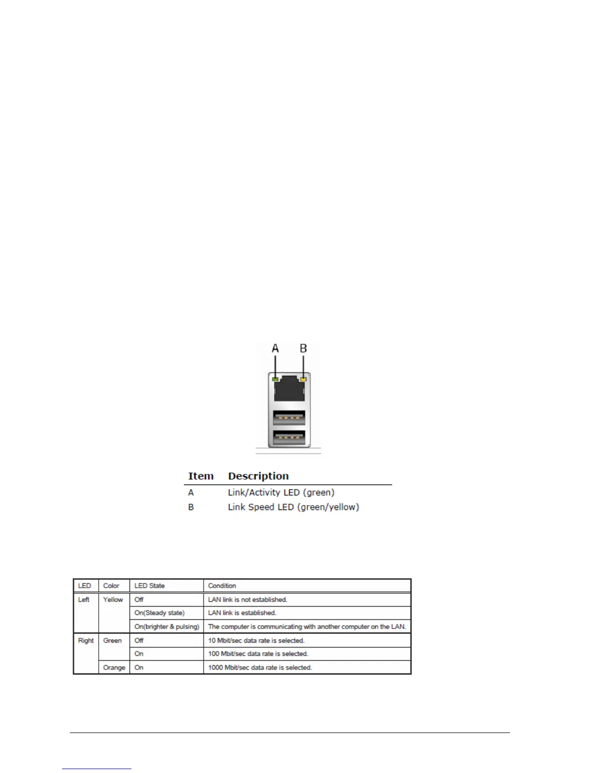 Table 1: LAN LED Status