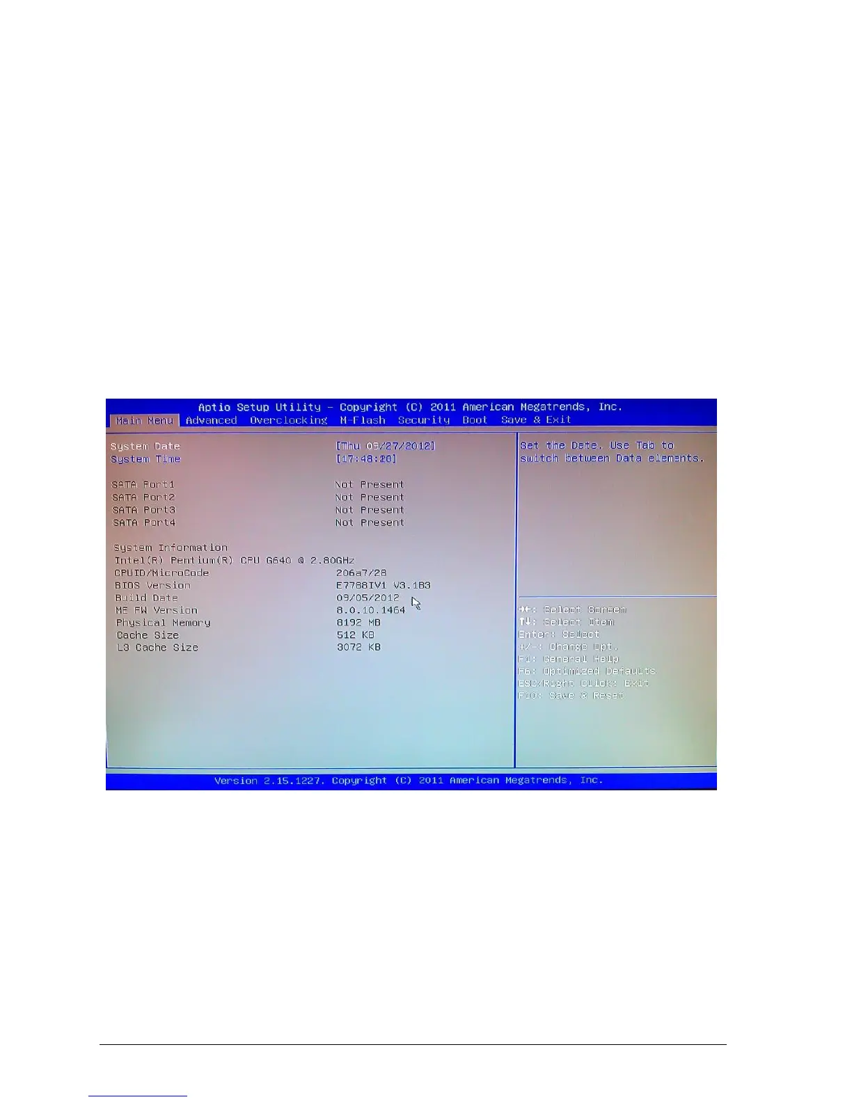 Main Menu - Use this menu for basic system configurations, such as time, date etc.