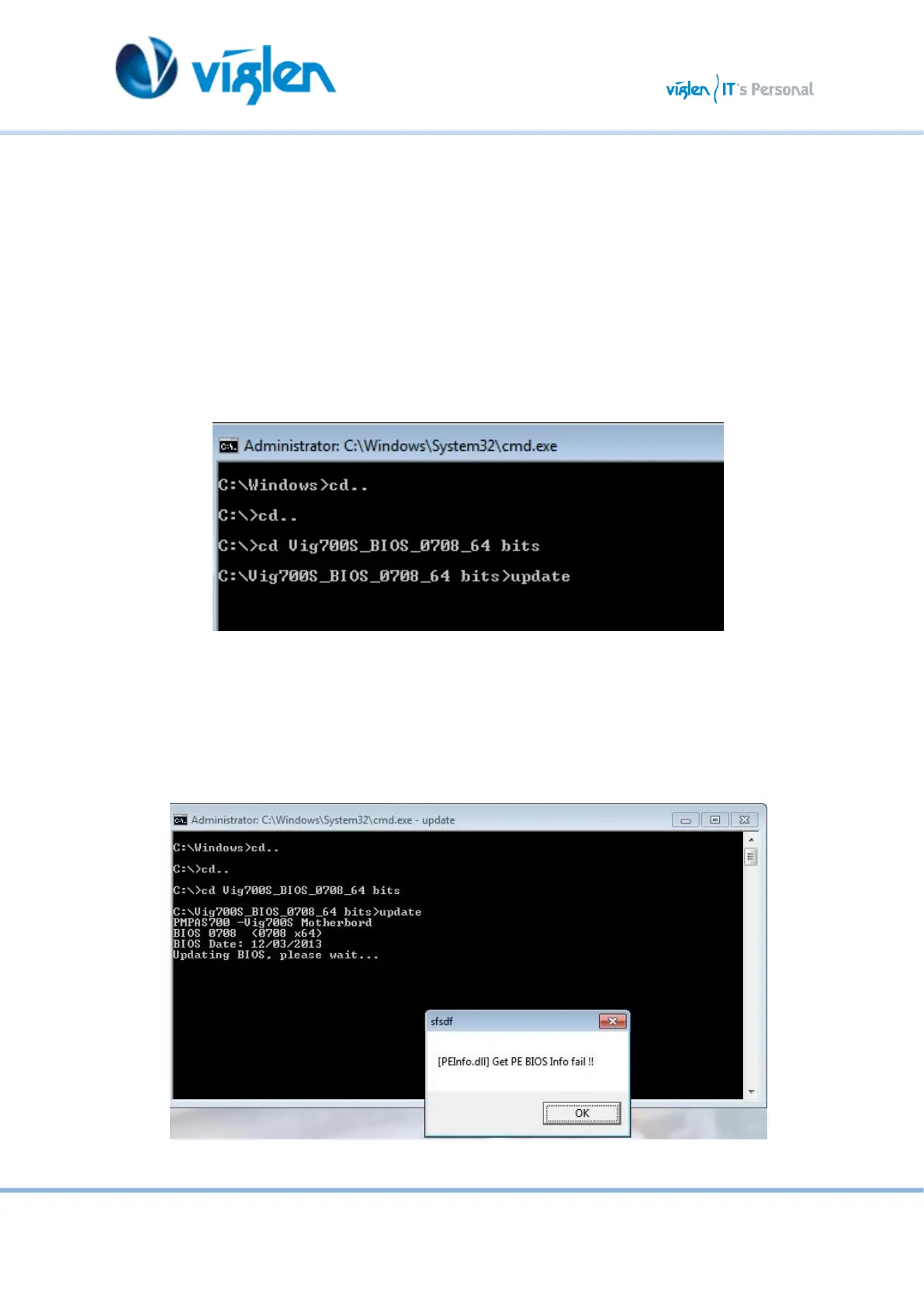 4. In commend prompt navigate to the extracted BIOS folder. (i.e. Vig700S_BIOS_0708_64 bits)