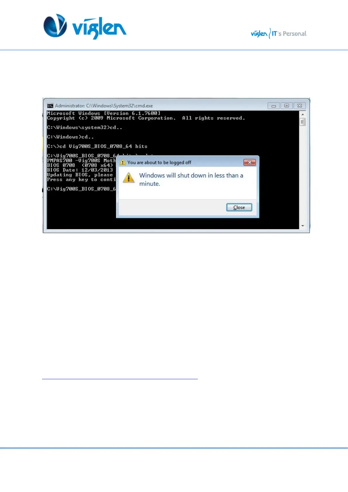 7. Once BIOS update is completed, pop up message will appear “Windows will shut down in less