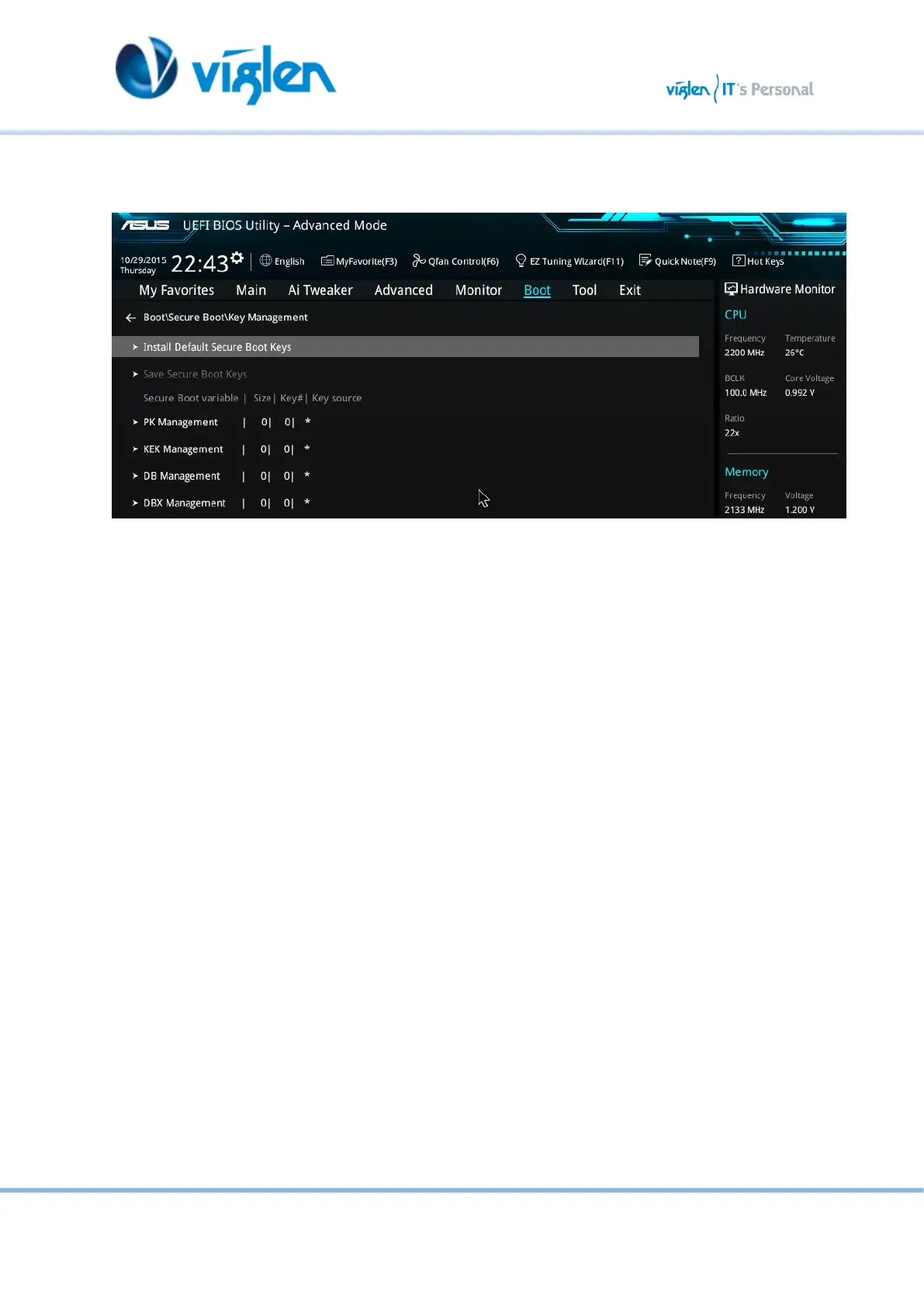 8. Select Install default Secure Boot keys and select Yes to proceed.