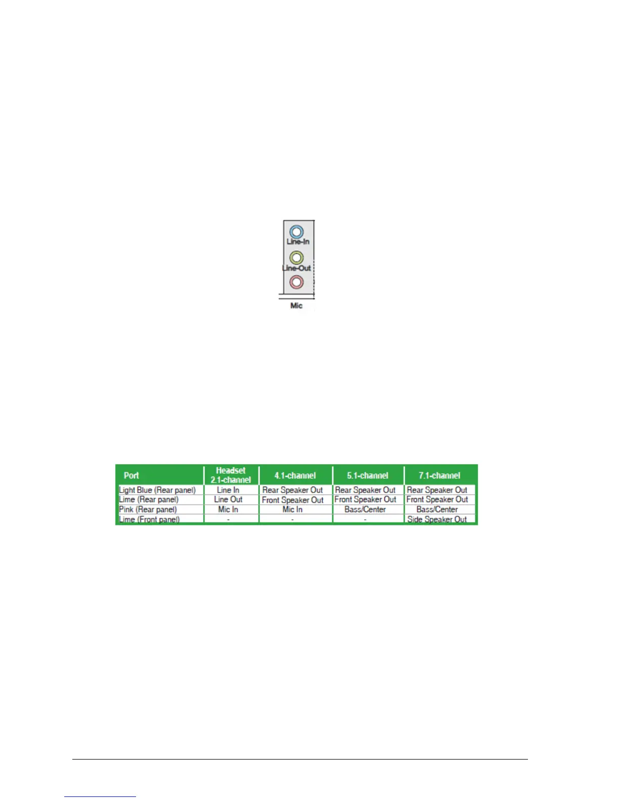 Line-In (Blue) - Line In, is used for external CD player, tape-player or other audio devices.