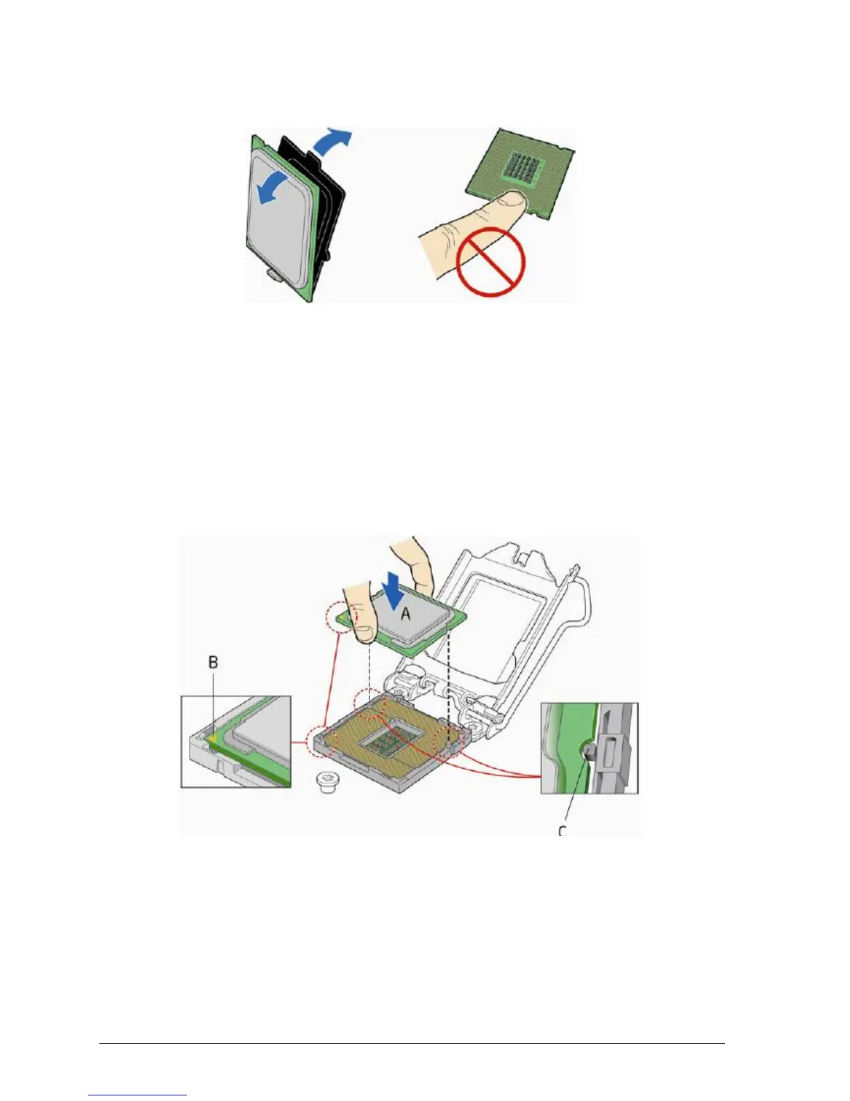 25, C). Lower the processor straight down without tilting or sliding it in the socket