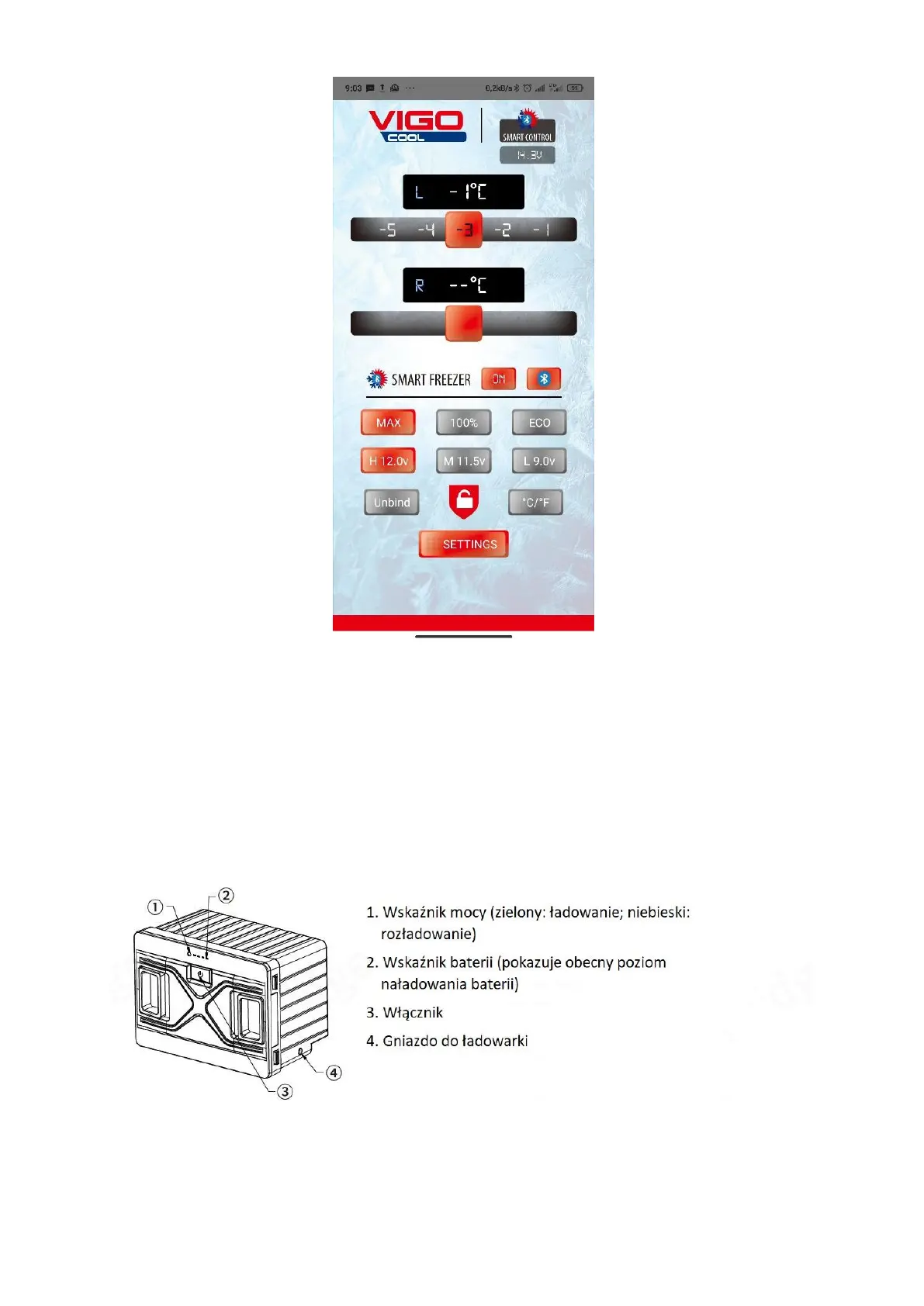 baterię należy włączyć przyciskiem „Włącznik”. Po wyczerpaniu się baterii należy ją