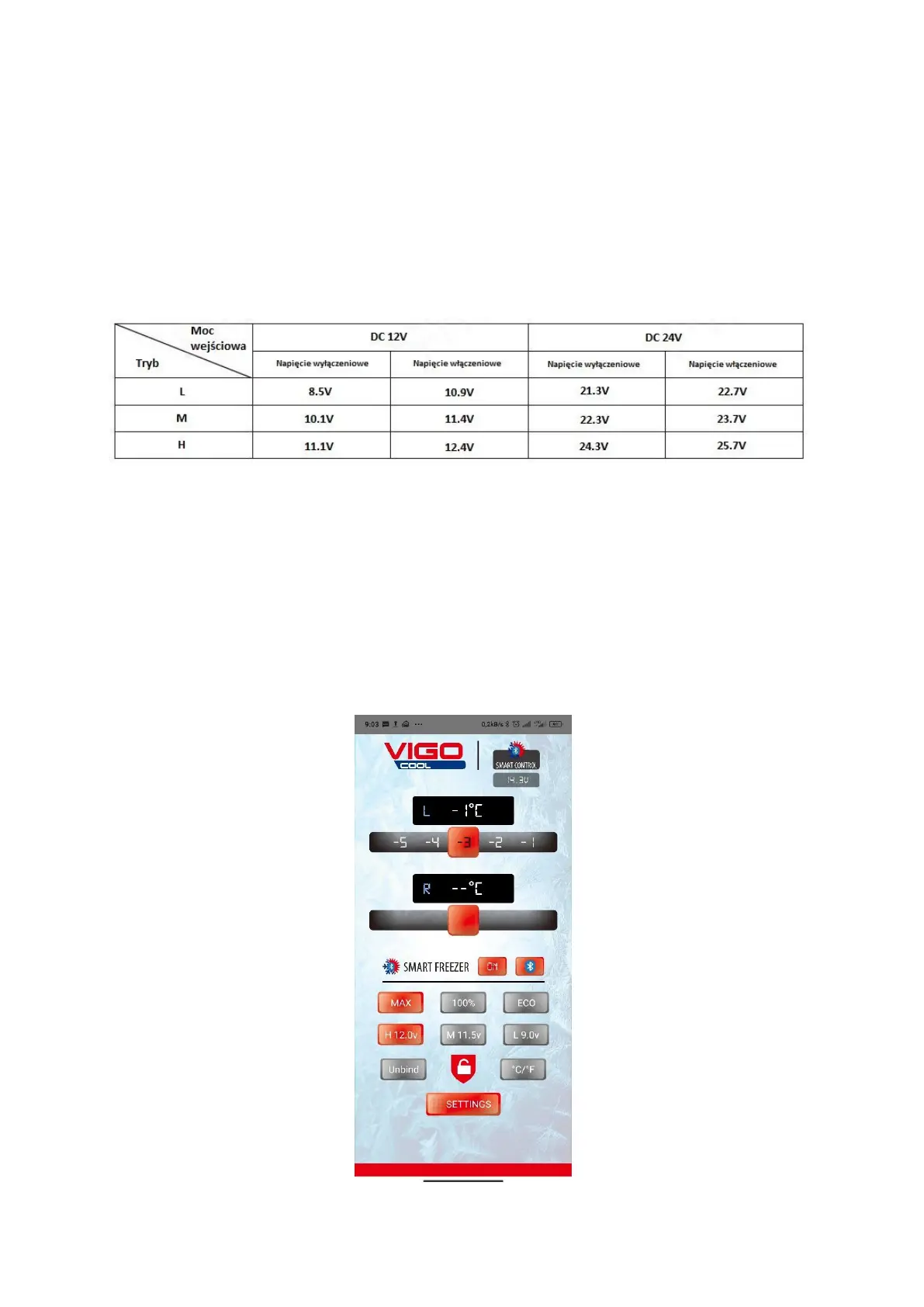 podłączeniu lodówki w pojeździe, natomiast średni i niski przy korzystaniu z