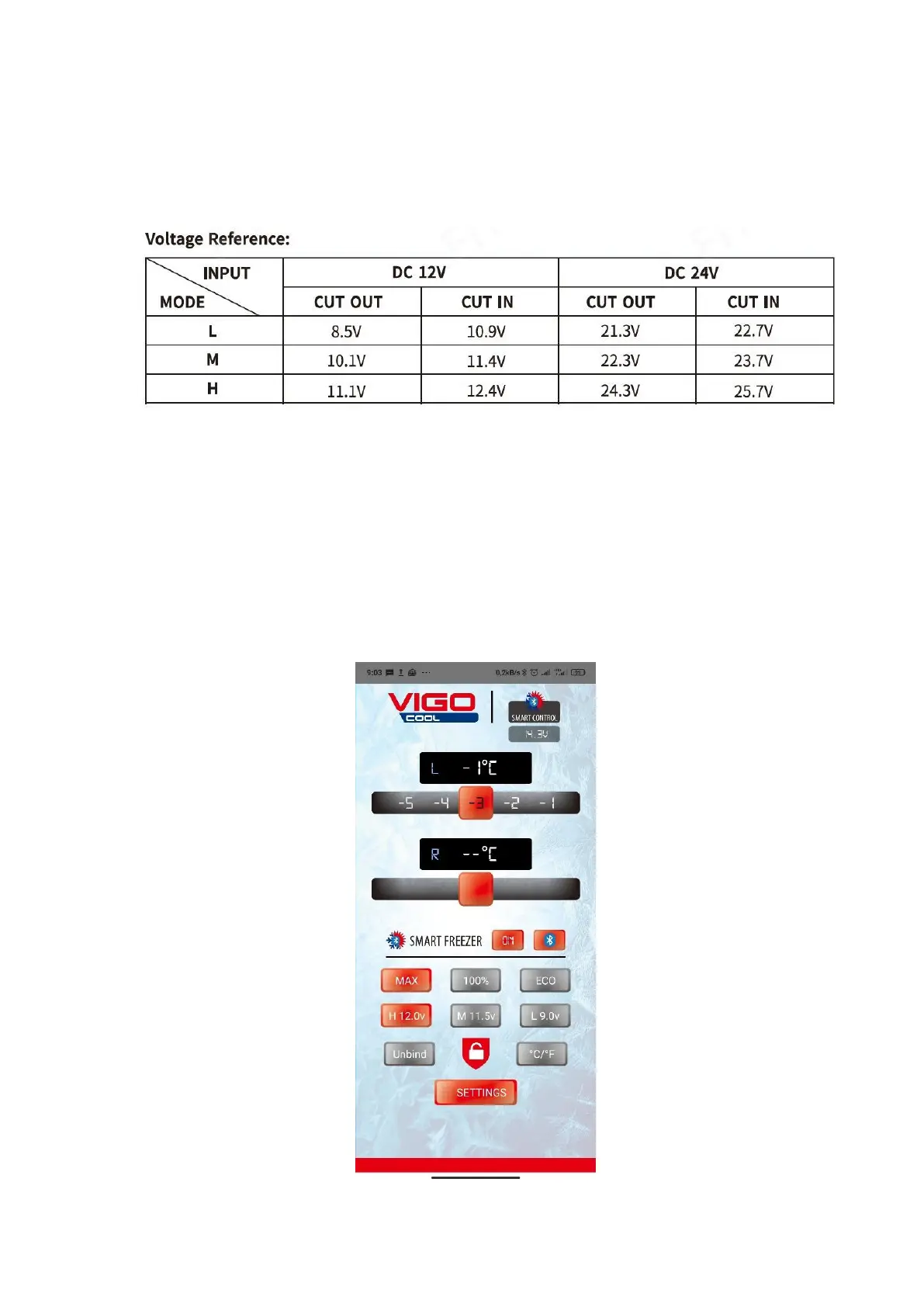 refrigerator in a vehicle, and medium and low mode when using portable/built-in batteries.
