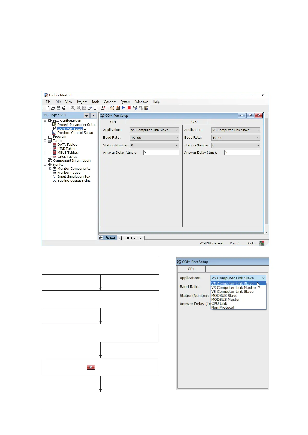 The operation types of communication ports are specied from the Ladder Master S programming software. The setting
