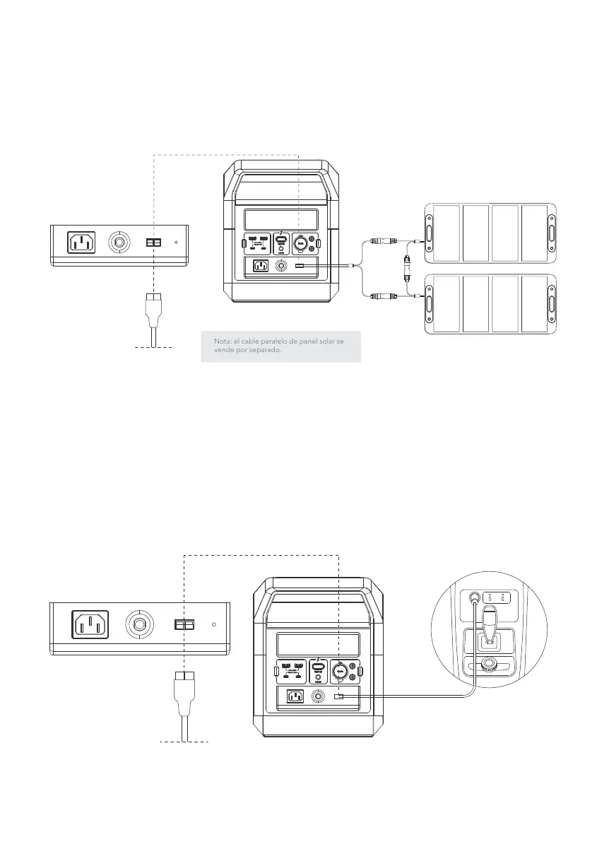 W. A plena luz del sol, el CAPTAIN 1200 se puede cargar con dos paneles solares de 200W, que tardarán aproximadamente 5.5