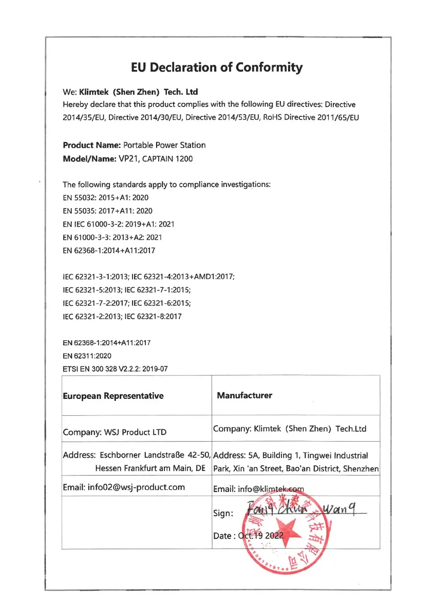 VigorPool CAPTAIN 1200 - EU Declaration of Conformity