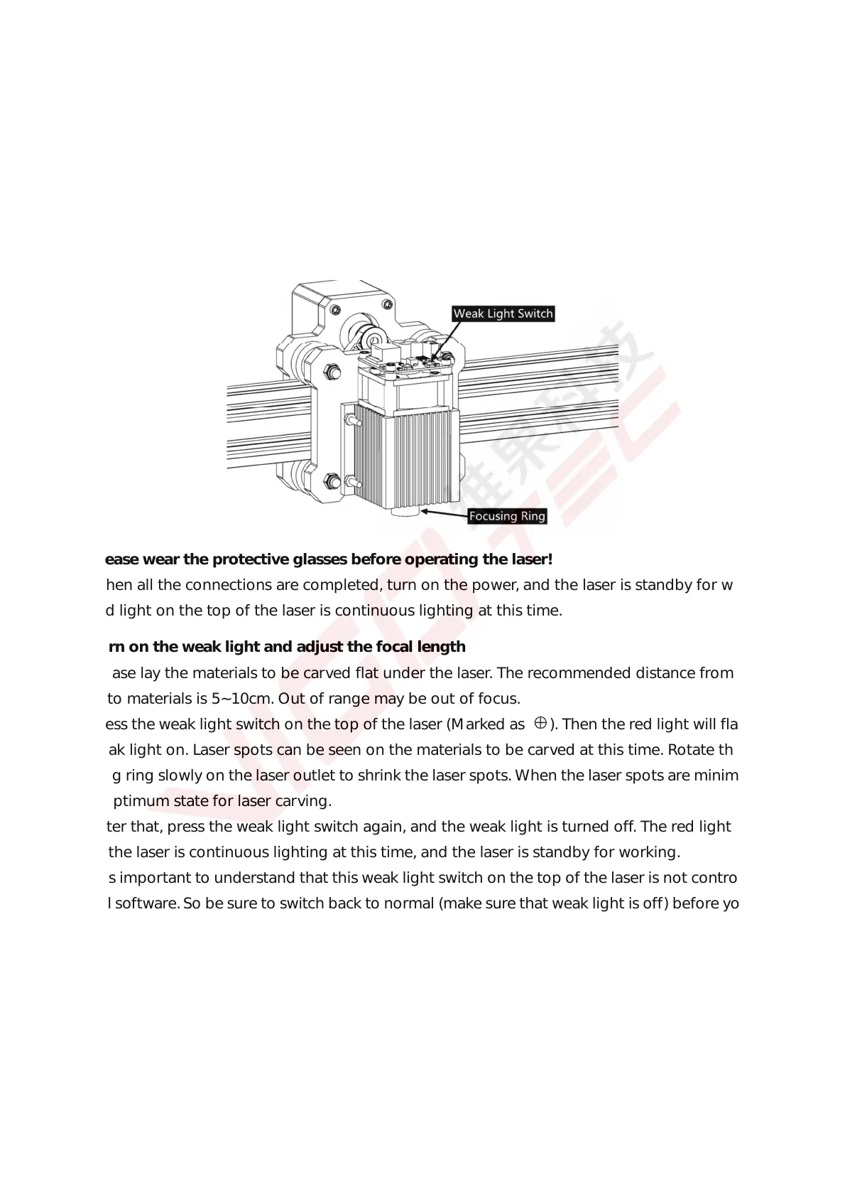 Please focus the laser on the materials to be carved referring to the laser instructions below before
