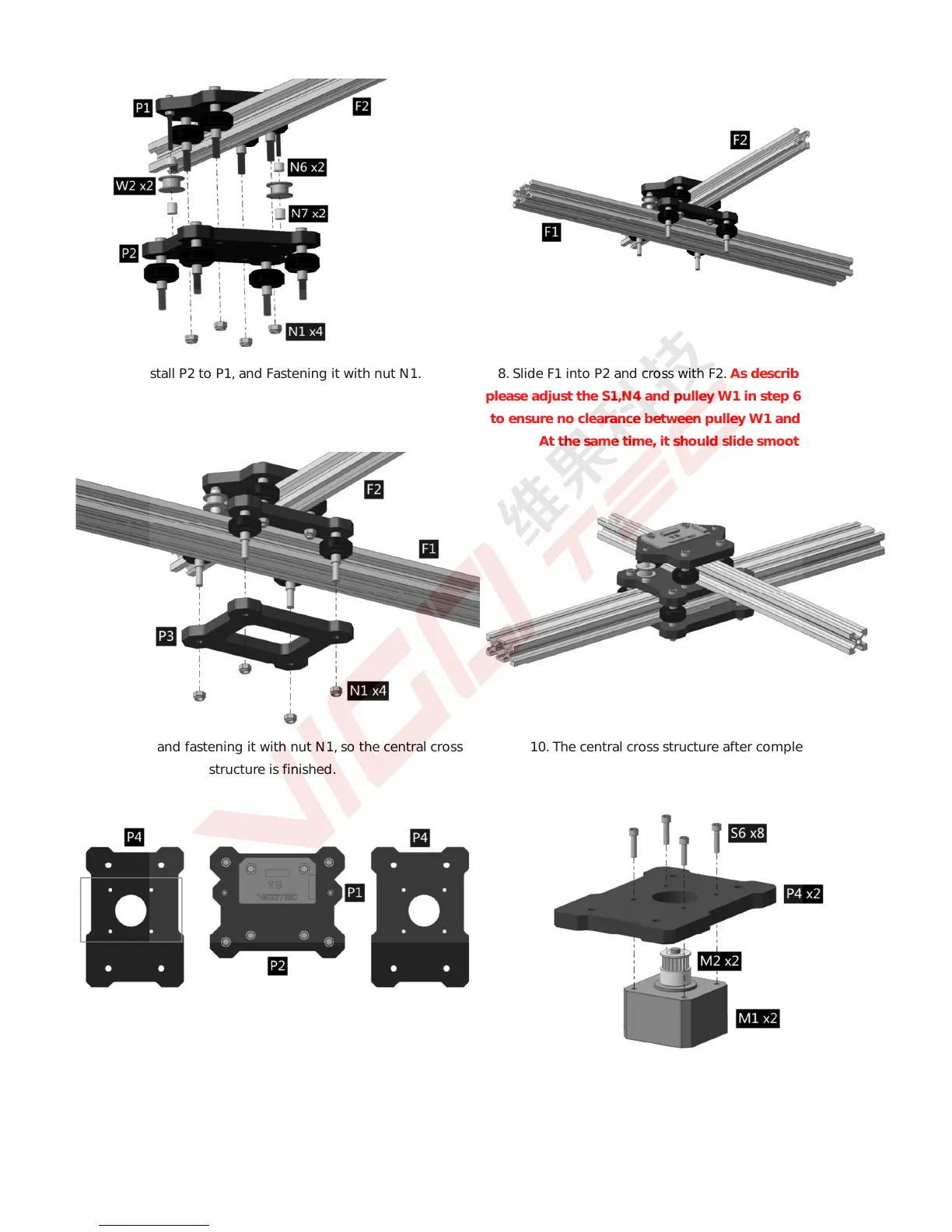 9. Install P3 and fastening it with nut N1, so the central cross