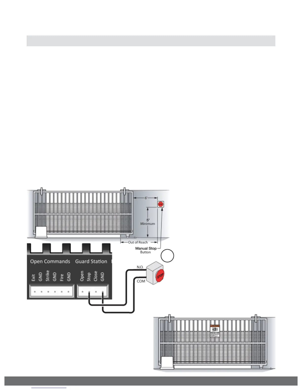 The Stop and/or Reset button must be located in the line-of-sight of the gate.