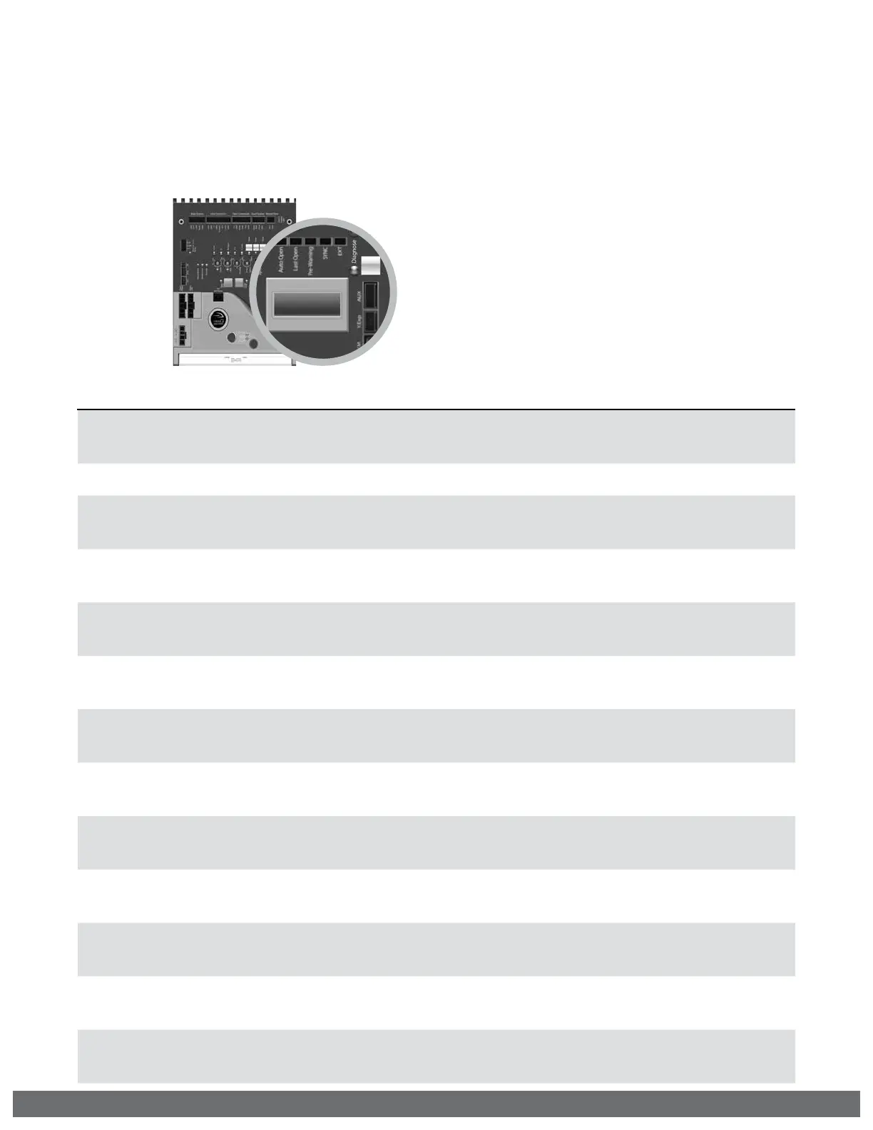 current conditions, settings, diagnostics and error messages. Use the table below to