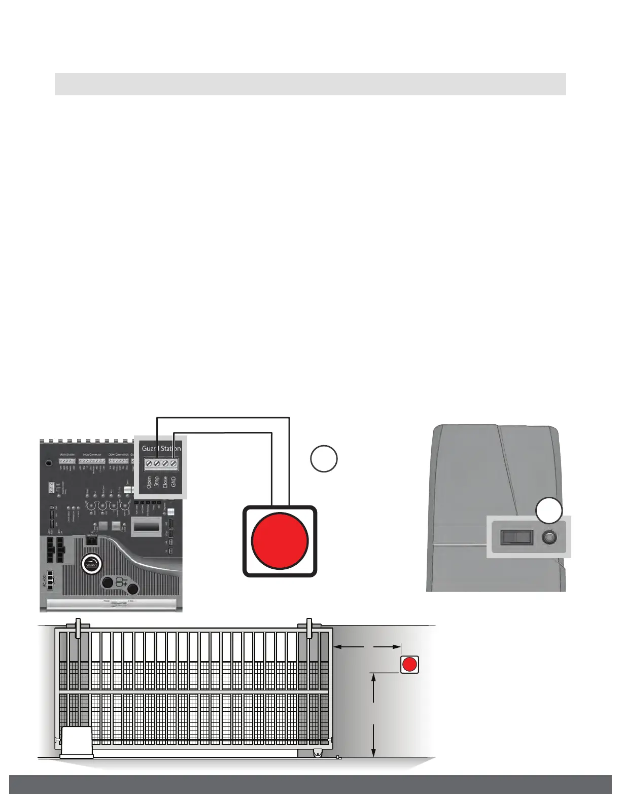 The Stop and/or Reset button must be located in the line-of-sight of the gate.